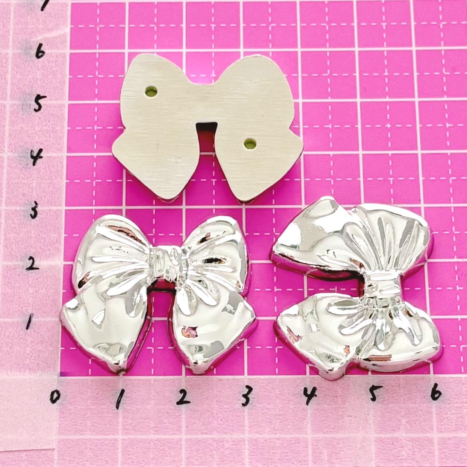シルバー ガーリーリボン デコパーツ 4個 ☆ ハンドメイド☆パーツ☆素材☆キッズアクセサリー☆かわいい☆ゆめかわいい☆パステル☆