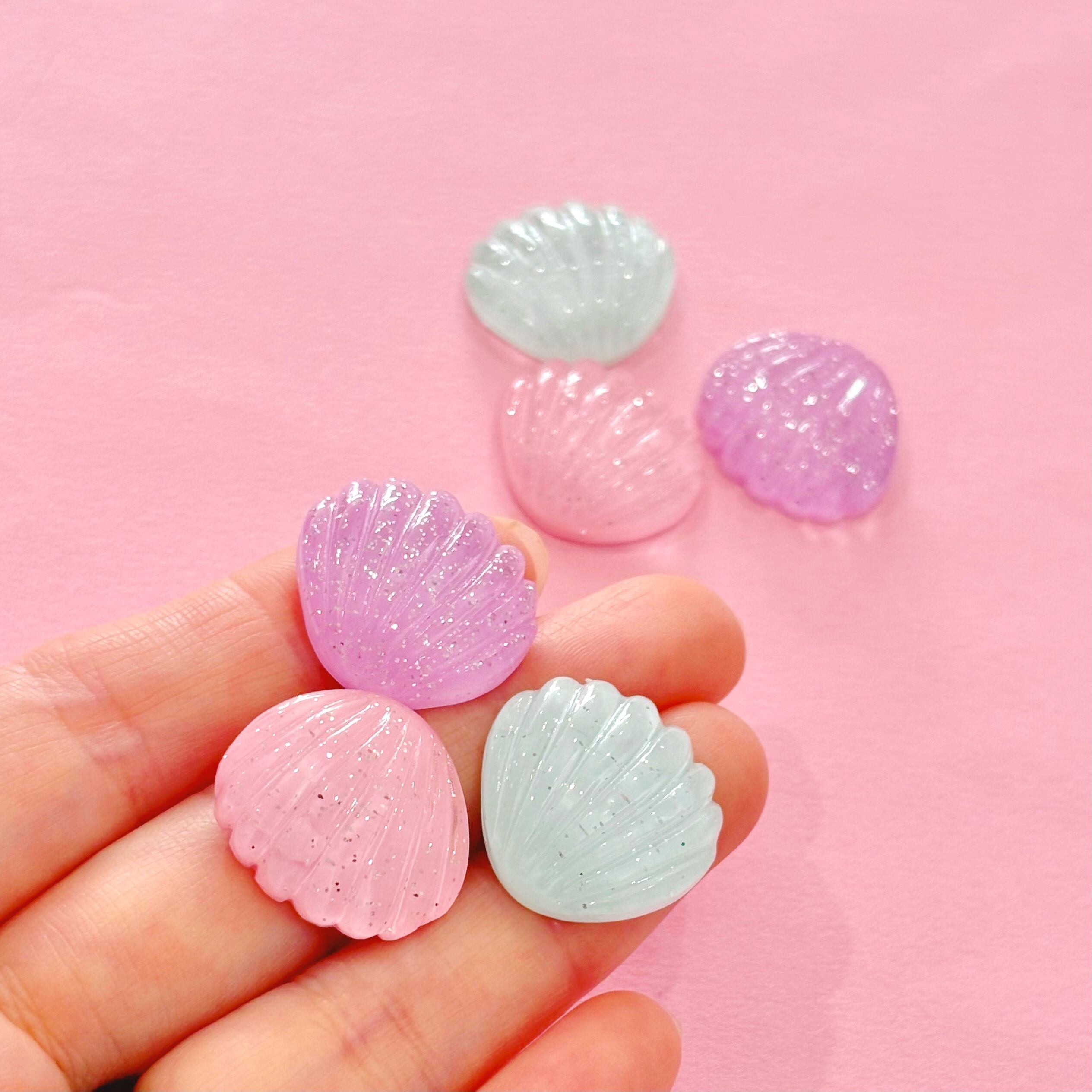 ラメ入り シェル 貝 ミックス 6個 デコパーツ ☆ ハンドメイド☆パーツ☆素材☆キッズアクセサリー☆かわいい☆ゆめかわいい☆パステル☆