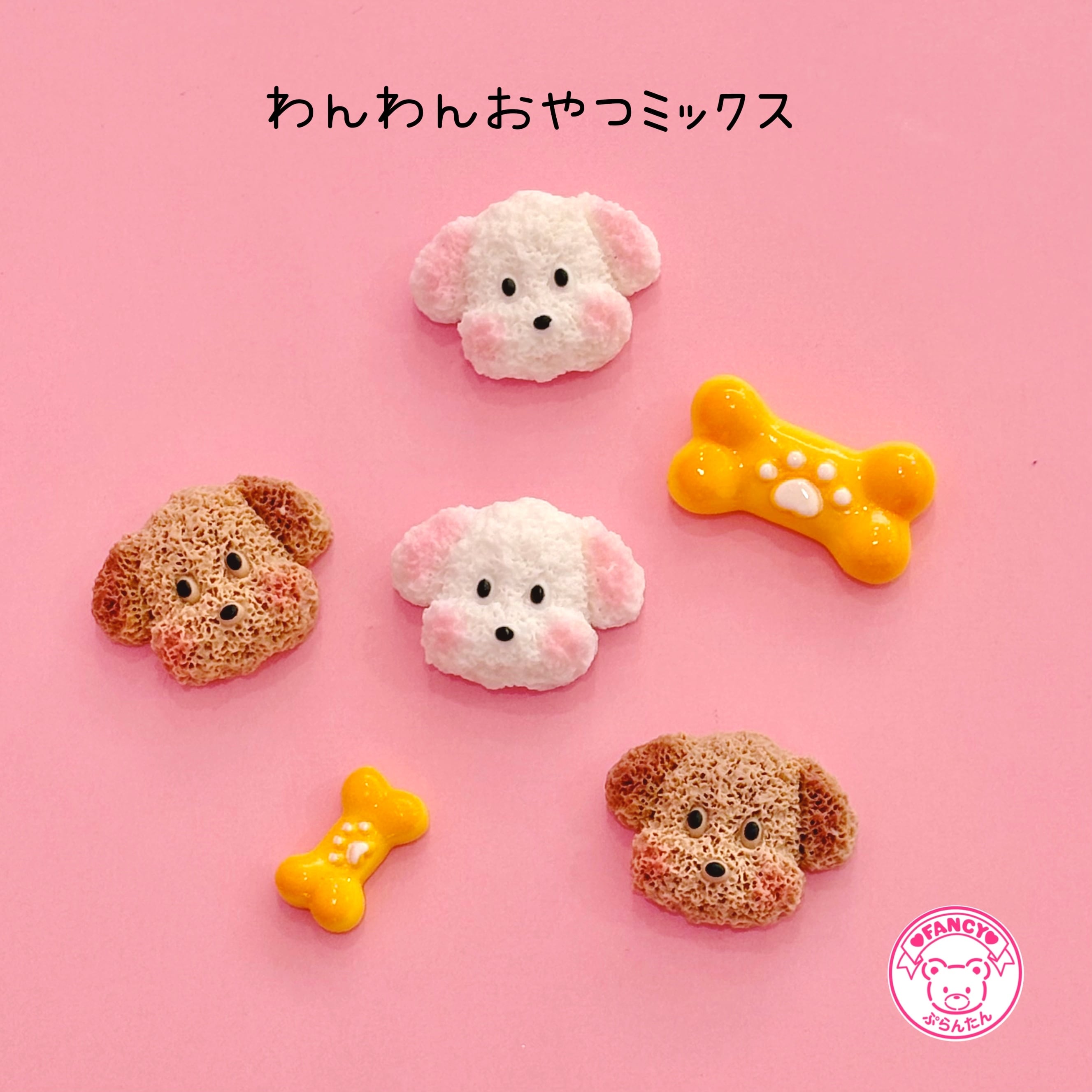 わんわんおやつミックス ♡ かわいい犬モチーフのデコパーツセット 6個☆ ハンドメイド☆パーツ☆素材☆キッズアクセサリー☆かわいい☆ゆめかわいい☆パステル☆