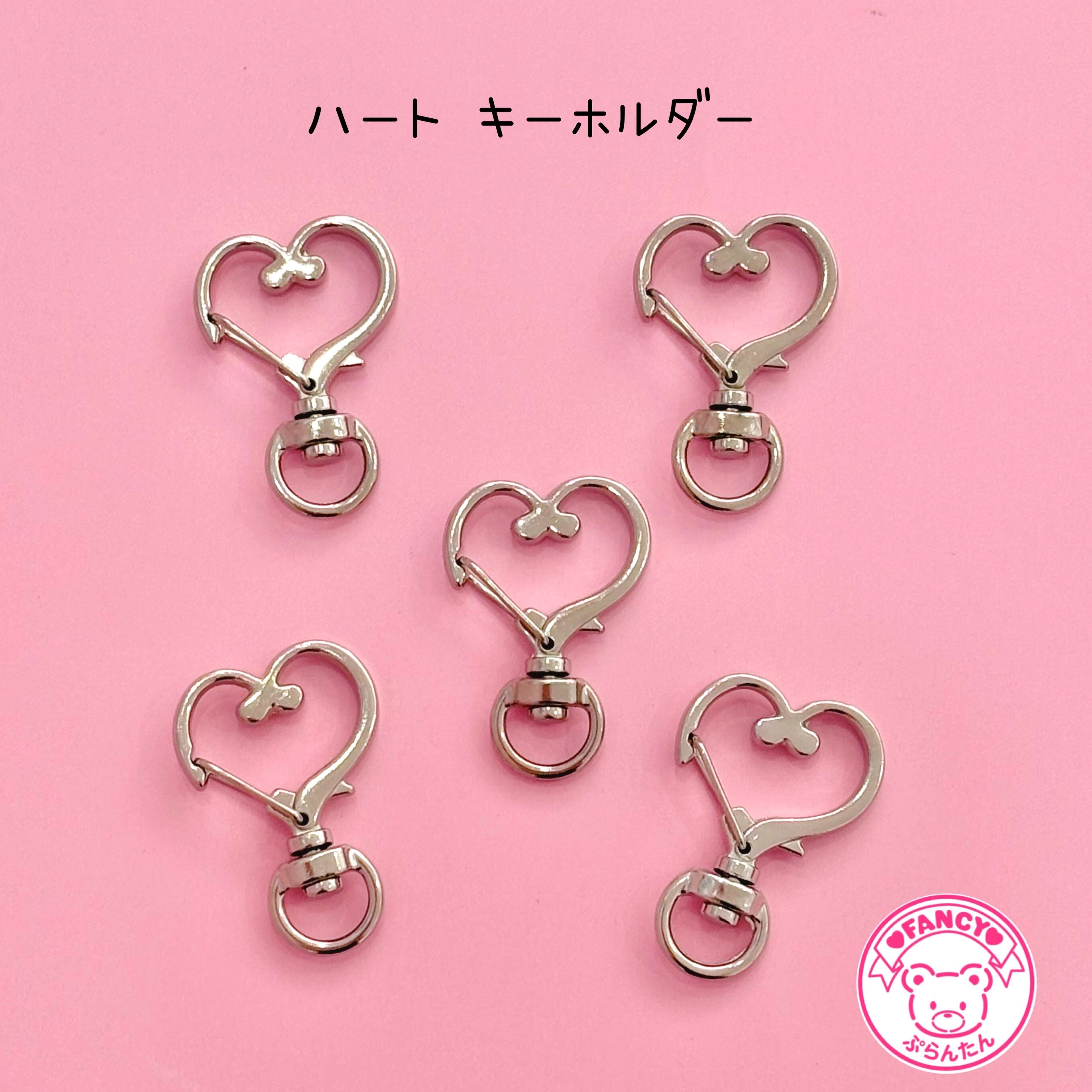 キーホルダー ハート 丸カン付き シルバー 5個 ☆キーホルダーパーツ☆ハンドメイド☆パーツ☆ワークショップ☆工作☆ビーズキーホルダー