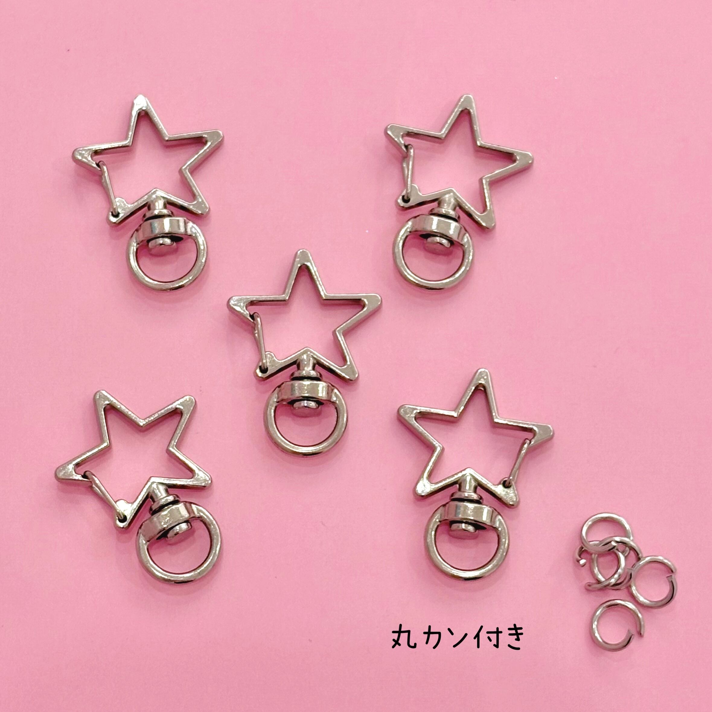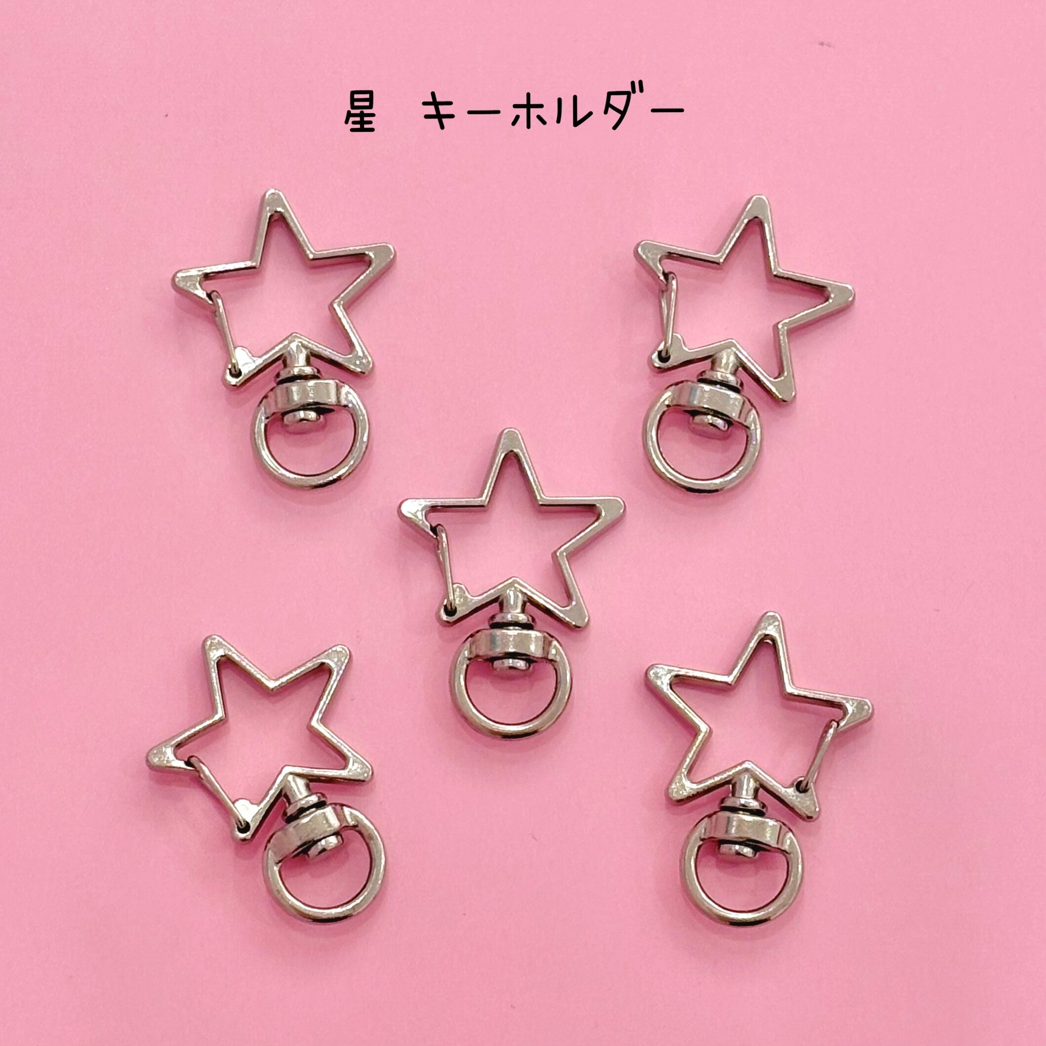 キーホルダー 星 丸カン付き シルバー 5個 ☆キーホルダーパーツ☆ハンドメイド☆パーツ☆ワークショップ☆工作☆ビーズキーホルダー