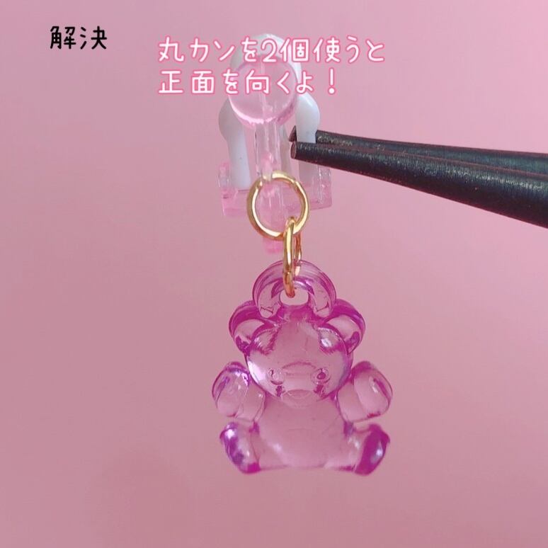 (チャームが 横を向いてしまうときは 丸カンをたしてね)