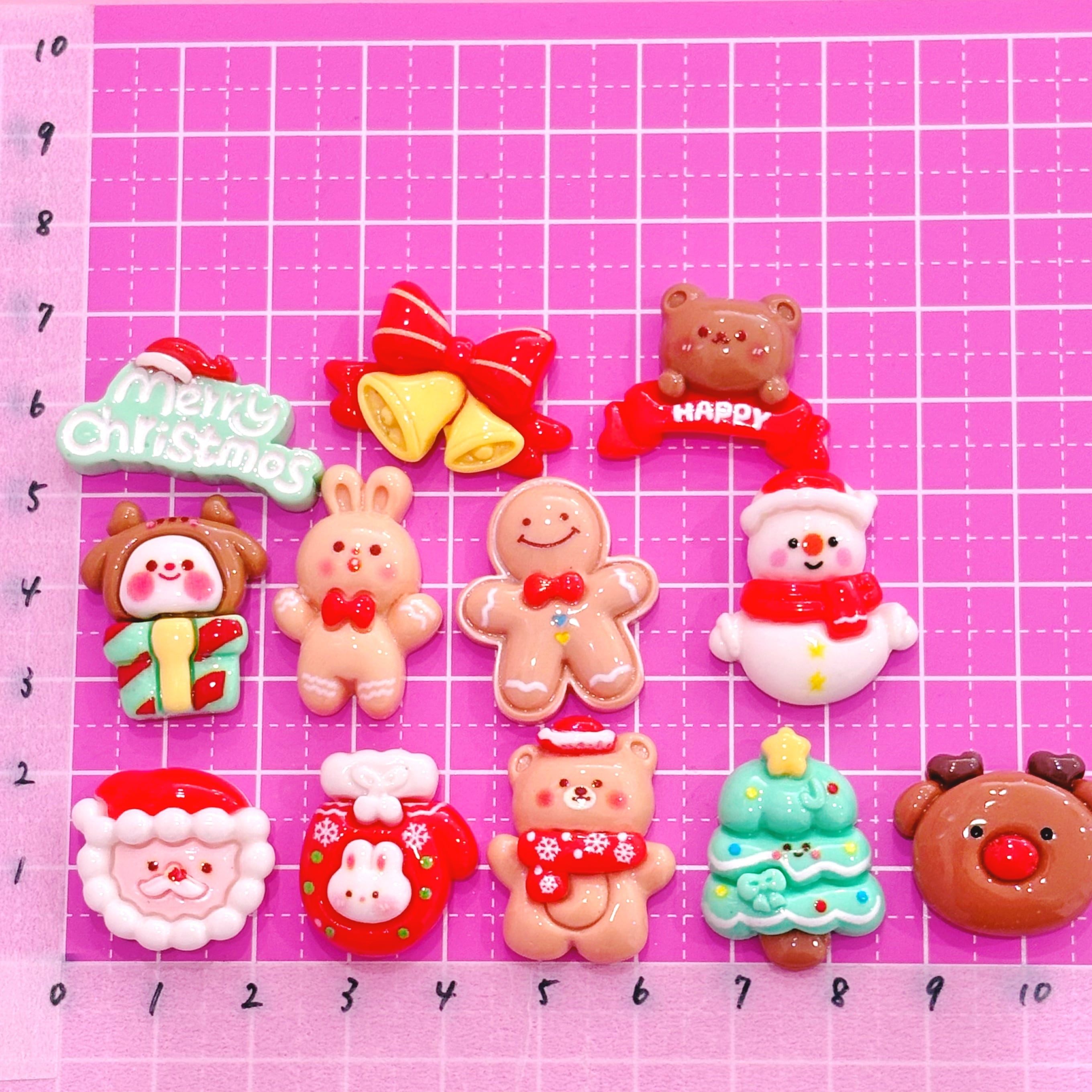 クリスマス デコパーツ ミックス ハッピー 12個 ☆ ハンドメイド☆ハンドメイドパーツ☆かわいい☆デコ☆ホイップデコ☆ヘアゴム☆ヘアピン