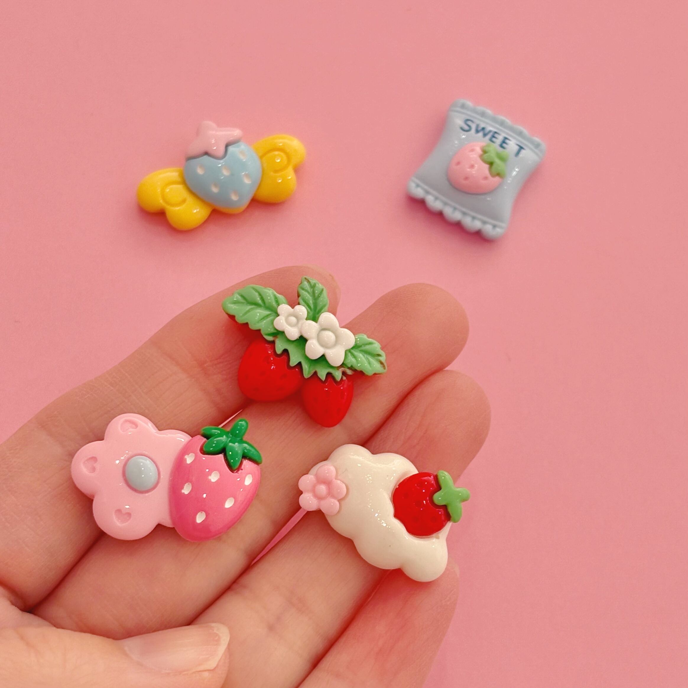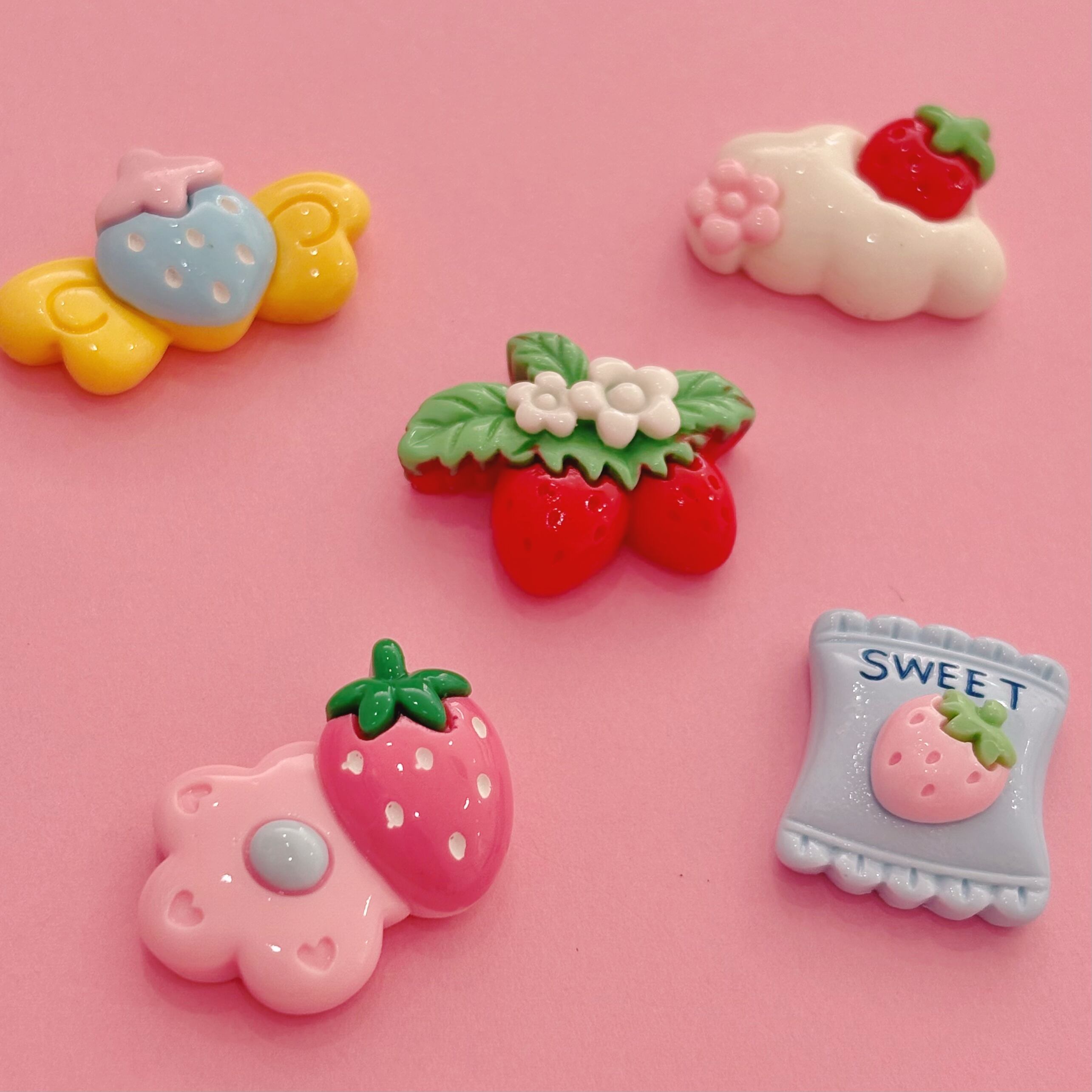 イチゴをモチーフとした「いちご sweet ミックス デコパーツ 5個」。ハンドメイド作品やおままごとの楽しさを引き立てる、魅力的なデコパーツです!