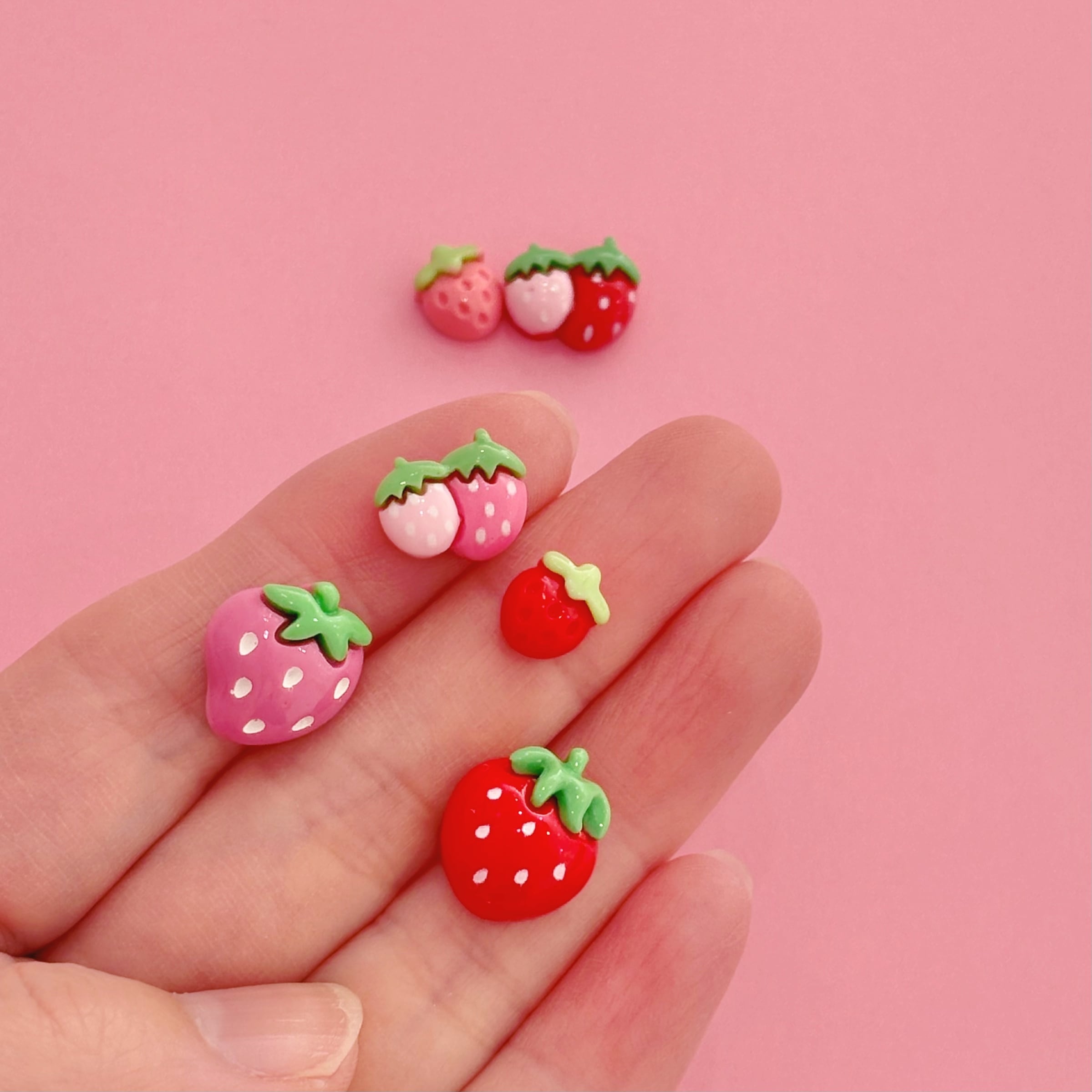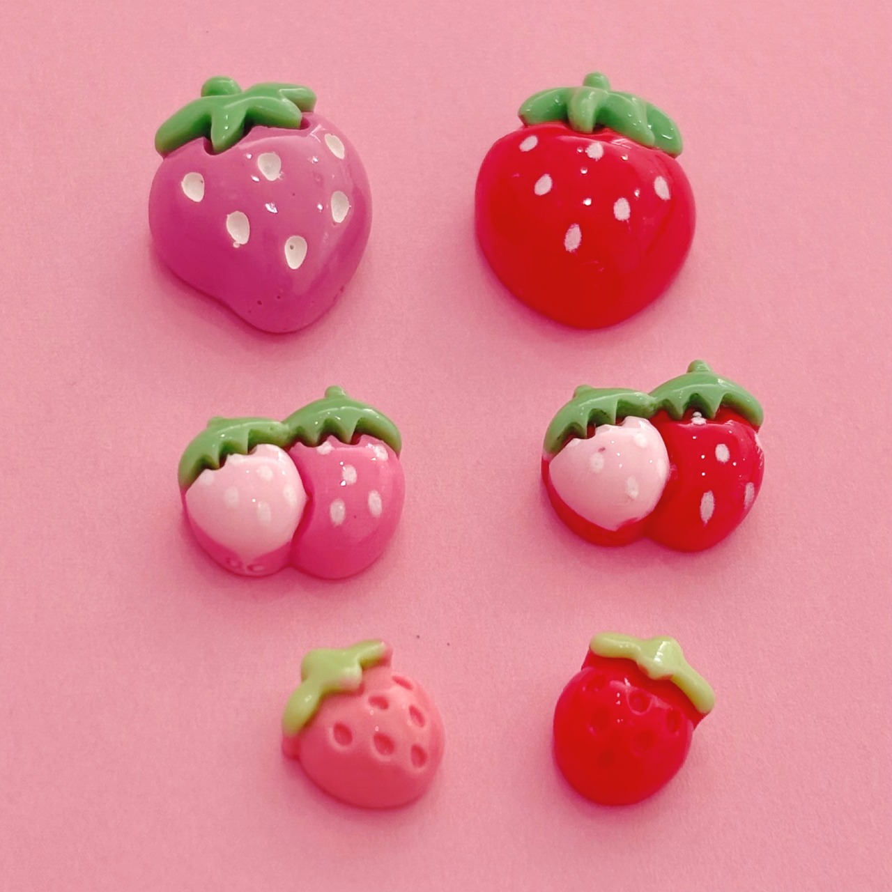 絵本の世界のような「ファンシーいちご ミックス デコパーツ 6個」。ハンドメイド作品やおままごとの楽しさを引き立てる、魅力的なデコパーツです!