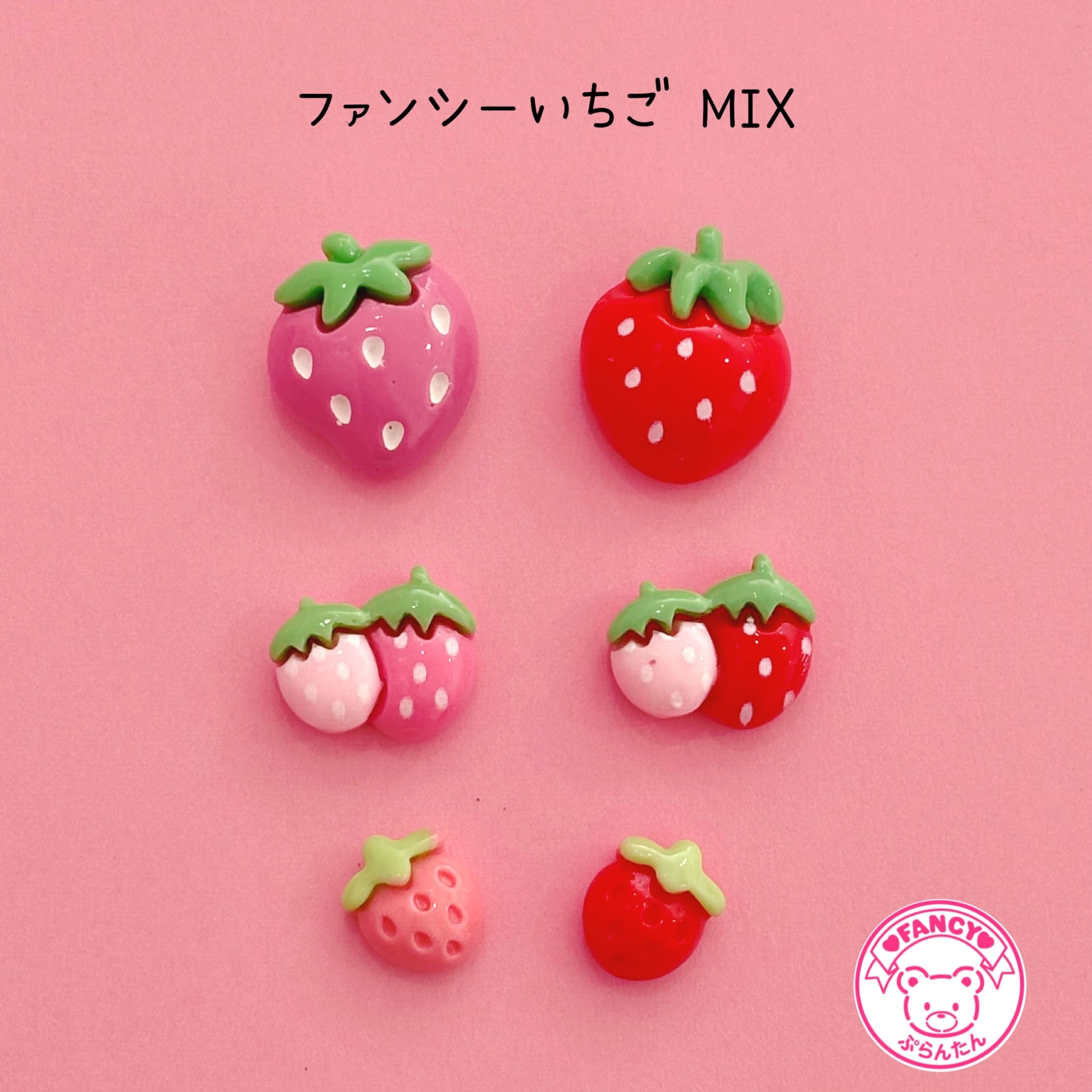 ファンシーいちご ミックス 6個 デコパーツ ☆ ハンドメイド☆ハンドメイドパーツ☆かわいい☆デコ☆デコパーツ ☆ホイップデコ☆ ヘアピン☆ ヘアゴム
