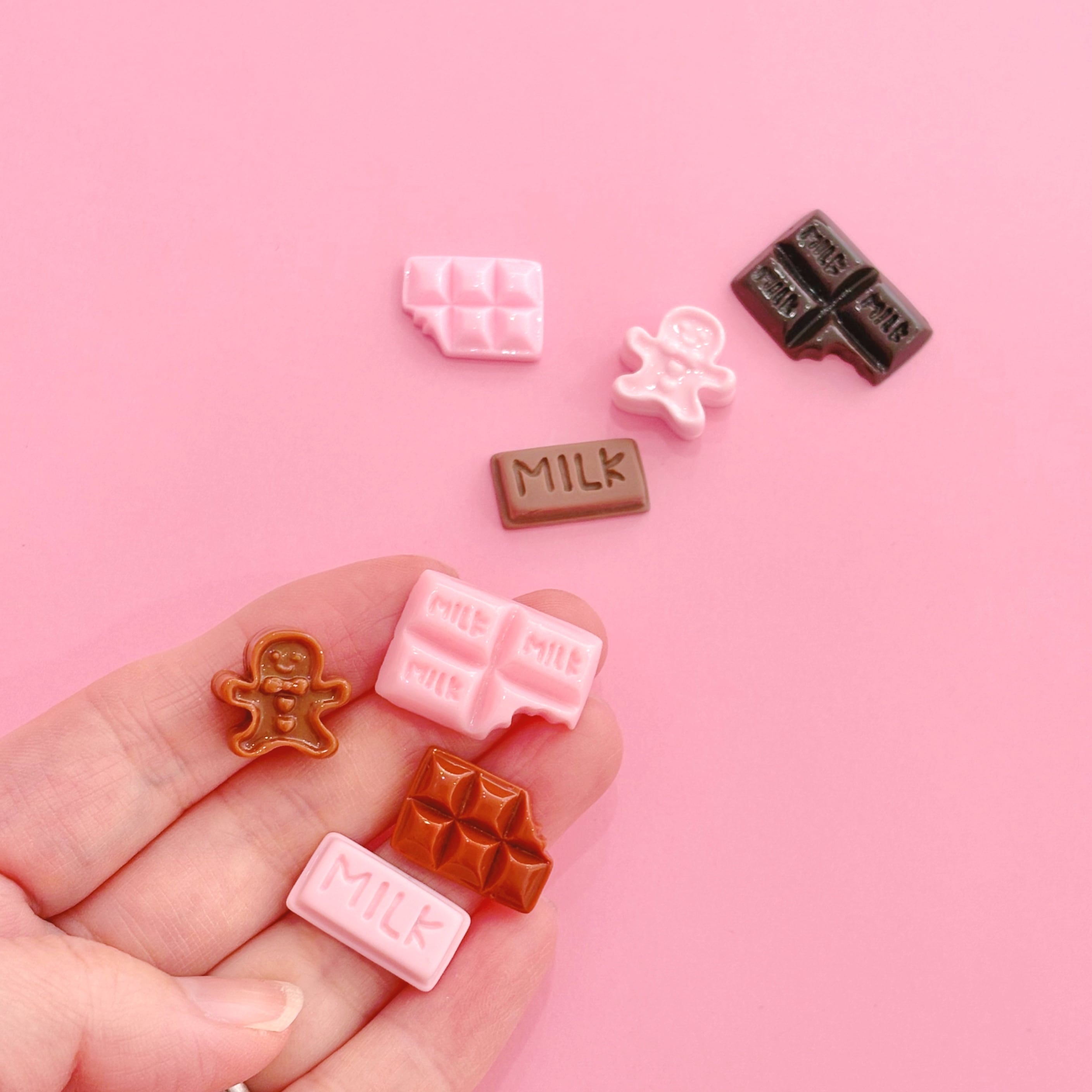 このセットには、かわいいチョコレートデザインのハンドメイドパーツが8個含まれており、楽しいホイップデコやアクセサリー作りに最適です。