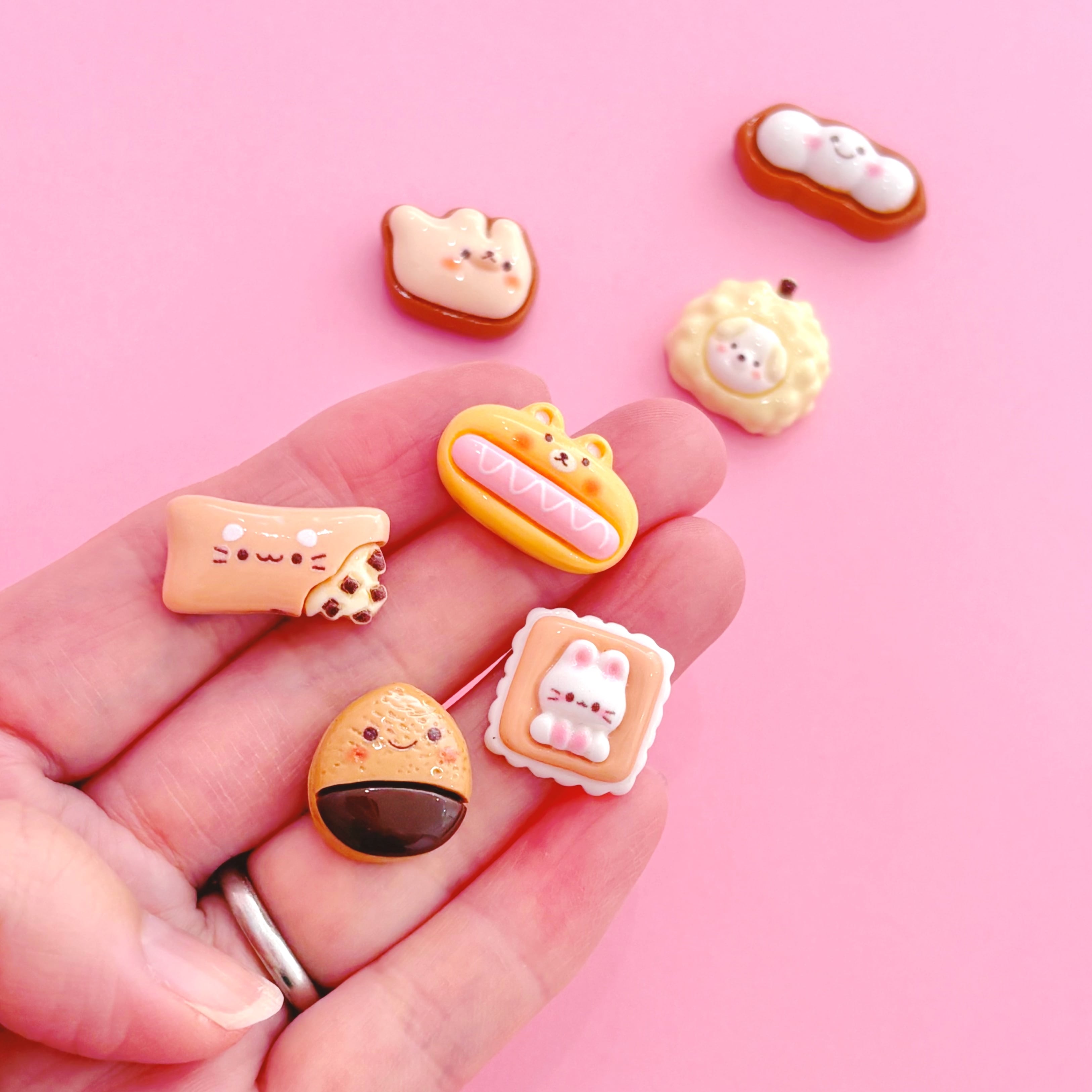 このセットには、可愛らしい動物モチーフのハンドメイドパーツが7個含まれており、チョコレート風のデザインが特徴です。
