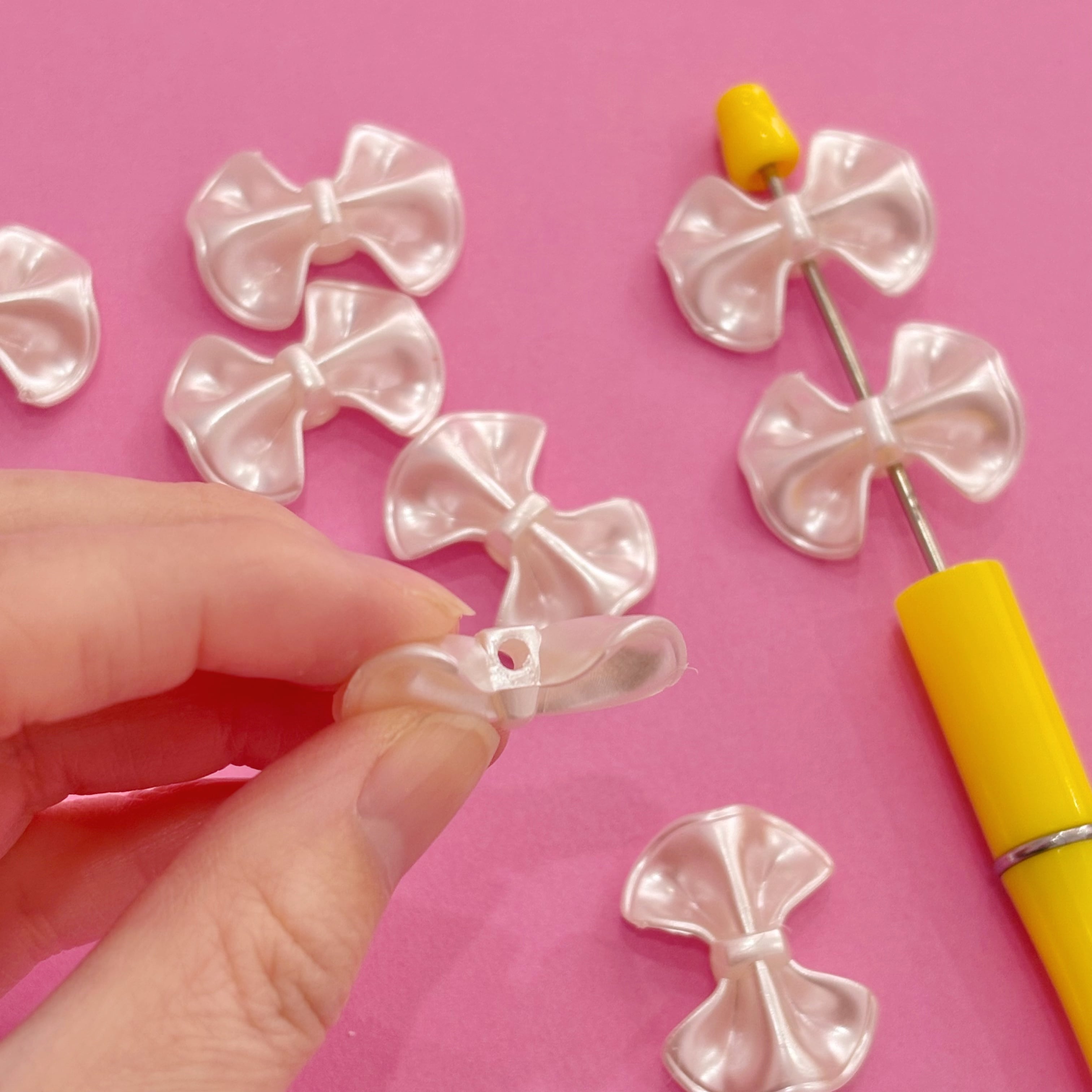 かわいい パール調のリボン型ビーズ
