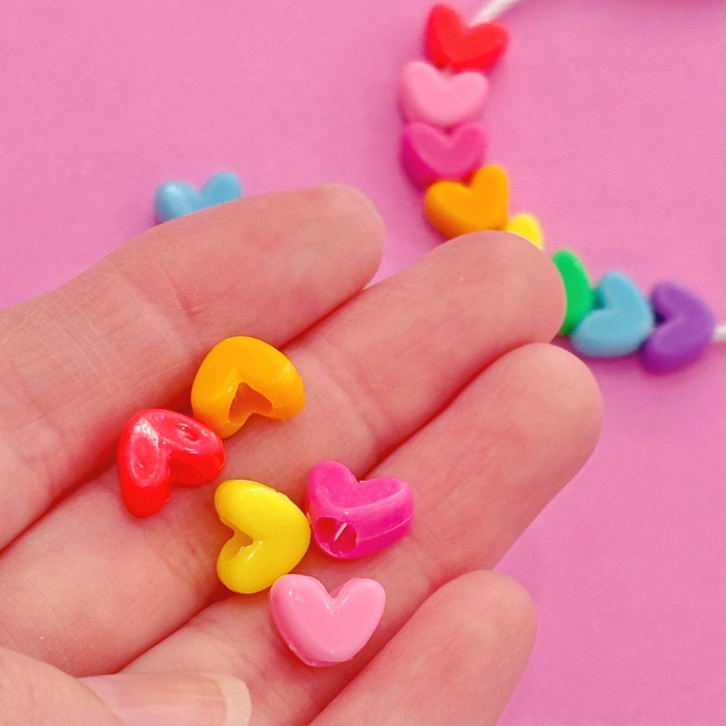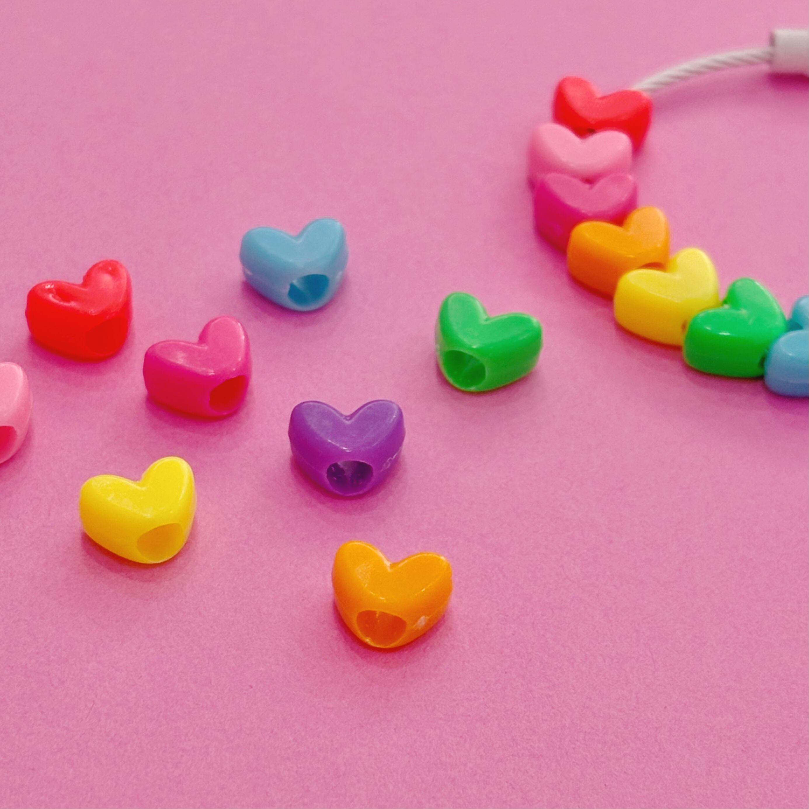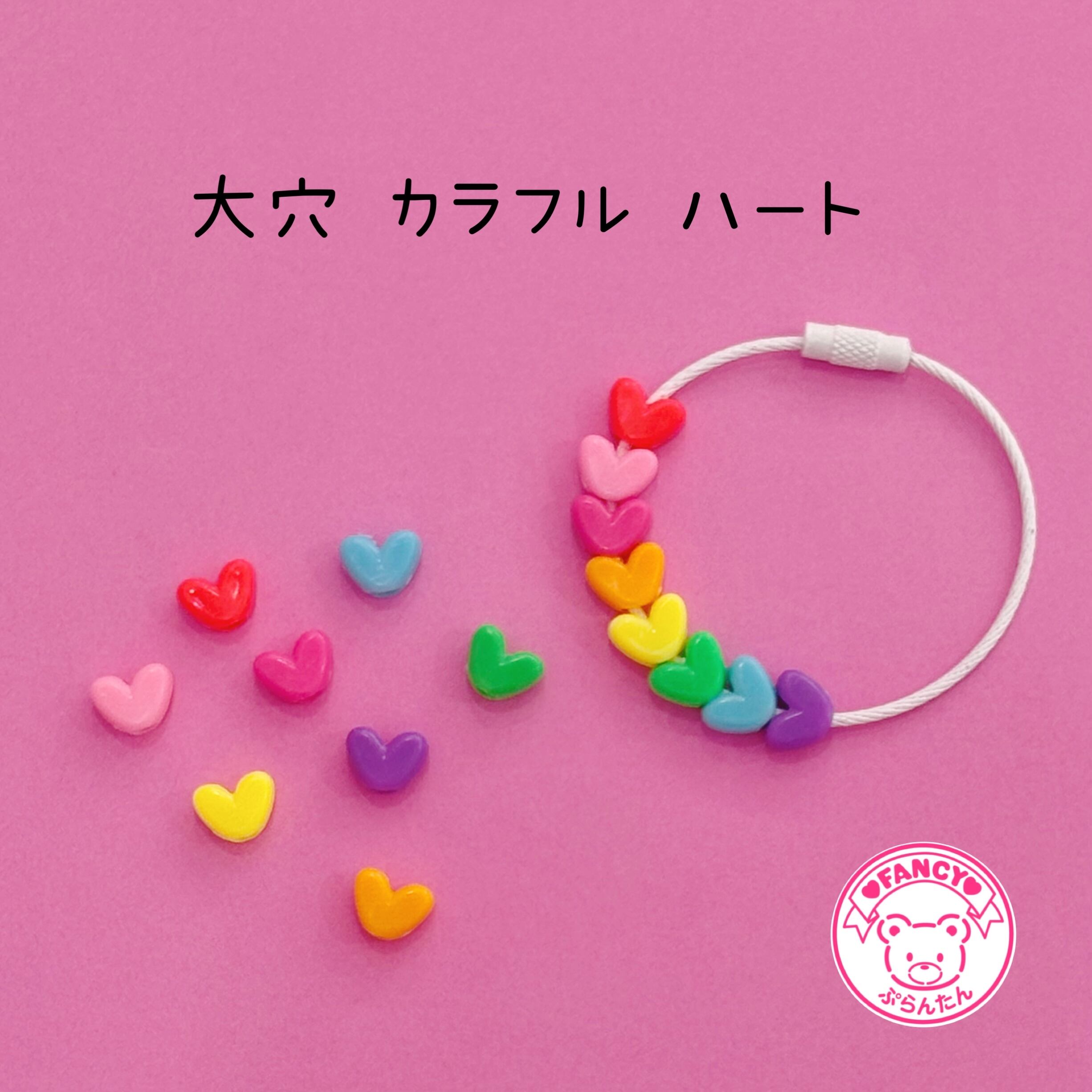 大穴ビーズ カラフル ハート 16個 ビーズ ☆カスタムボールペン☆ハンドメイド☆パーツ☆素材☆キッズアクセサリー☆かわいい☆ゆめかわいい☆パステル☆