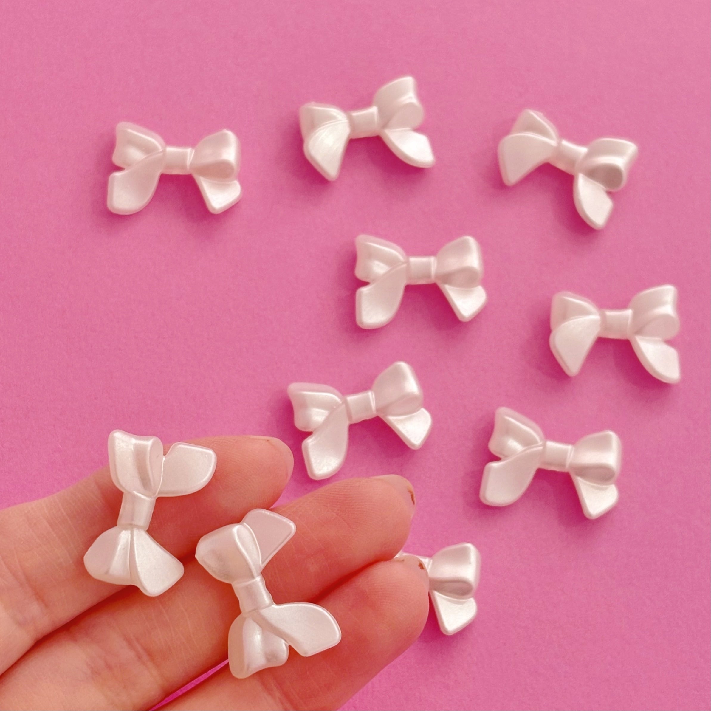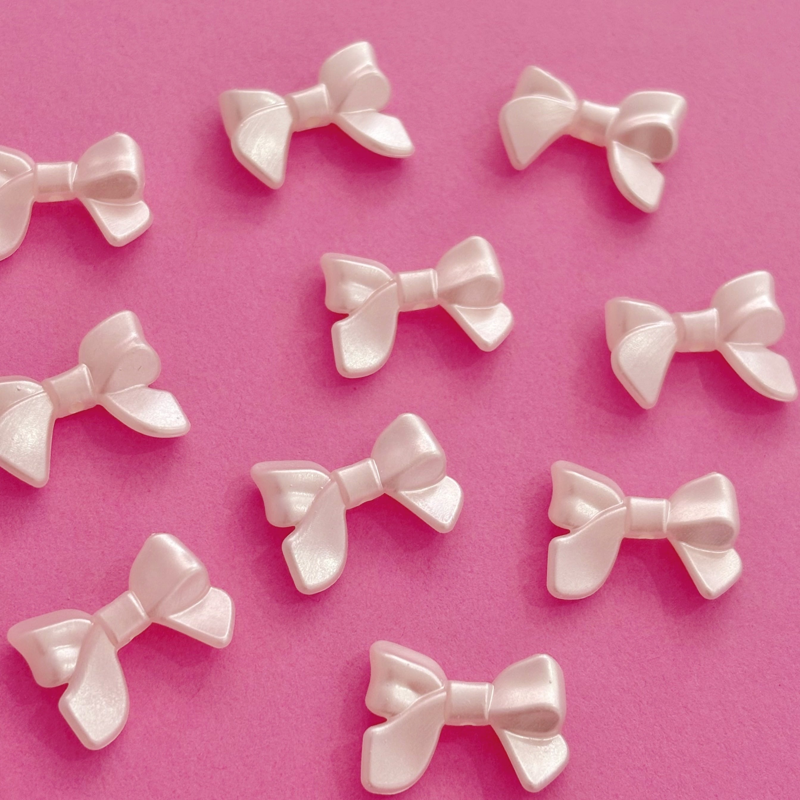 ミニサイズのパール調 リボン型 縦穴ビーズ 10個