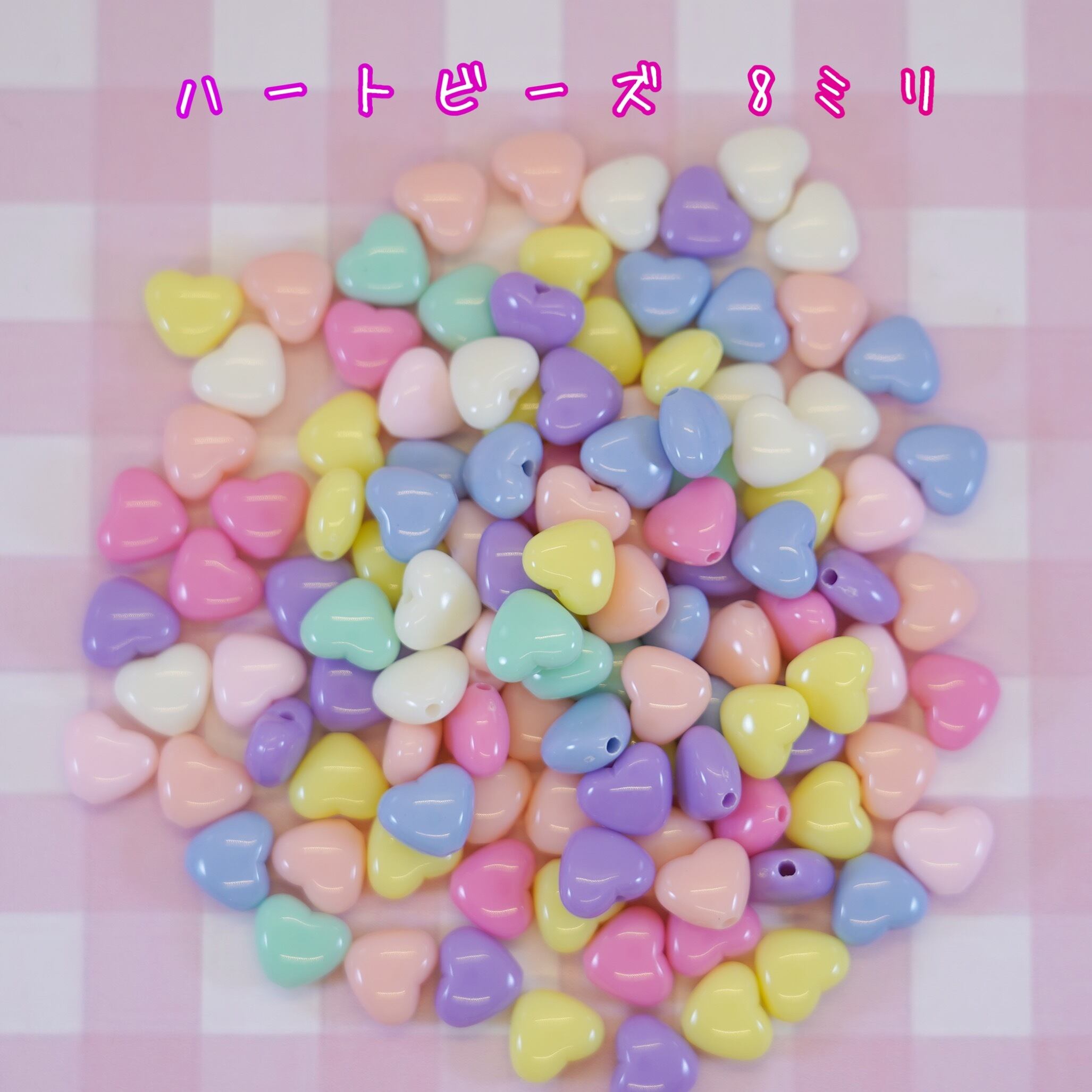 ハートビーズ 8mm 50個☆ハンドメイド☆パーツ☆素材☆キッズアクセサリー☆かわいい☆ゆめかわいい☆パステル☆221
