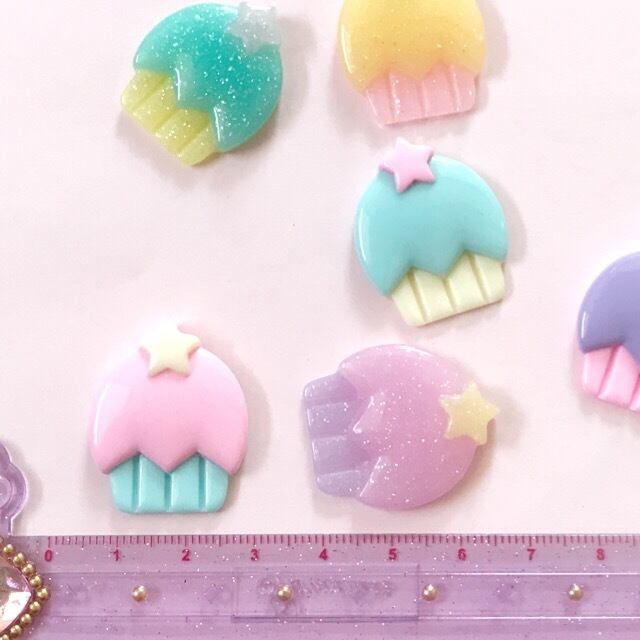 デコパーツ カップケーキ 6個☆ハンドメイド☆パーツ☆素材☆キッズアクセサリー☆かわいい☆ゆめかわいい☆パステル