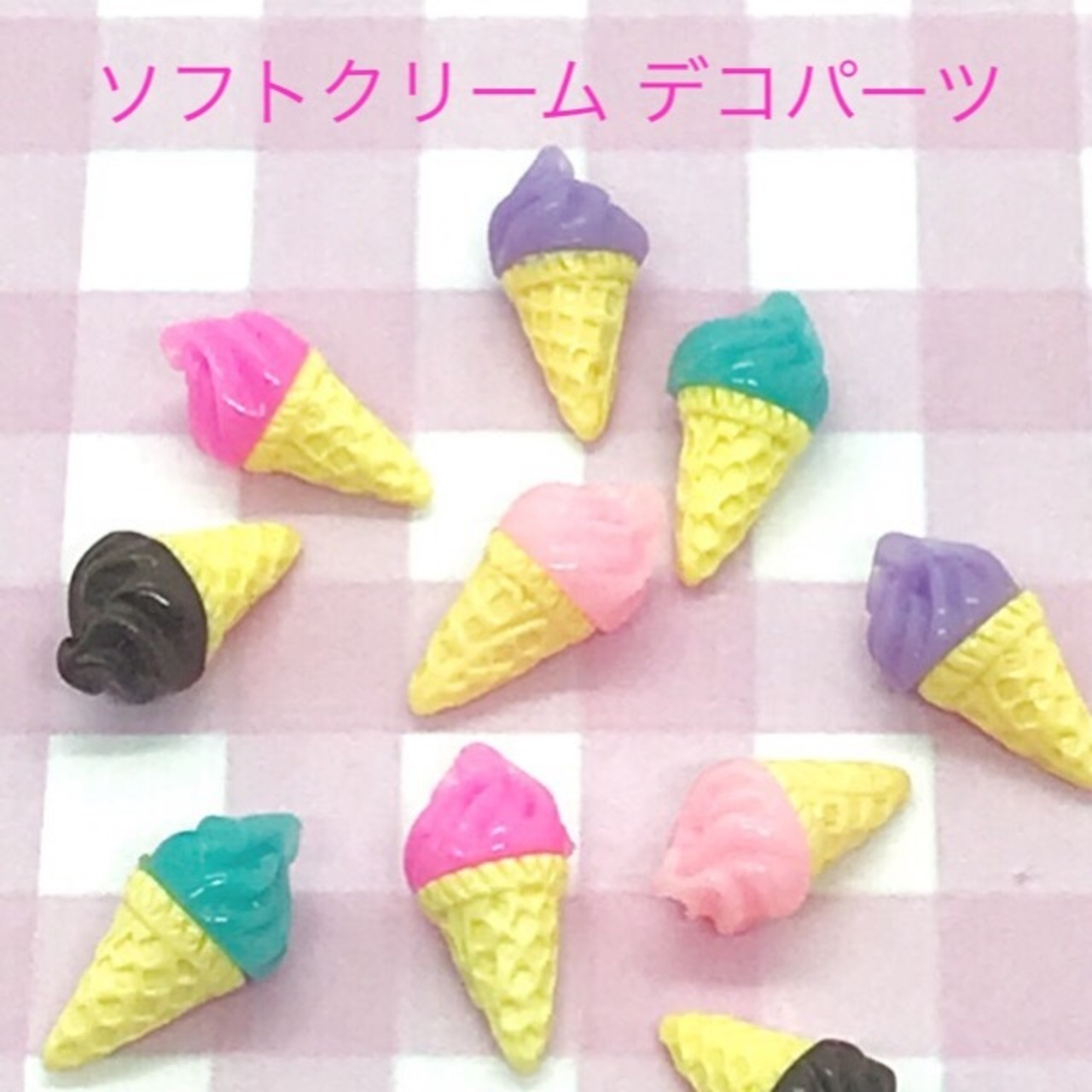 ソフトクリーム デコパーツ 5個☆ハンドメイド☆パーツ☆素材☆キッズアクセサリー☆かわいい☆ゆめかわいい☆パステル☆