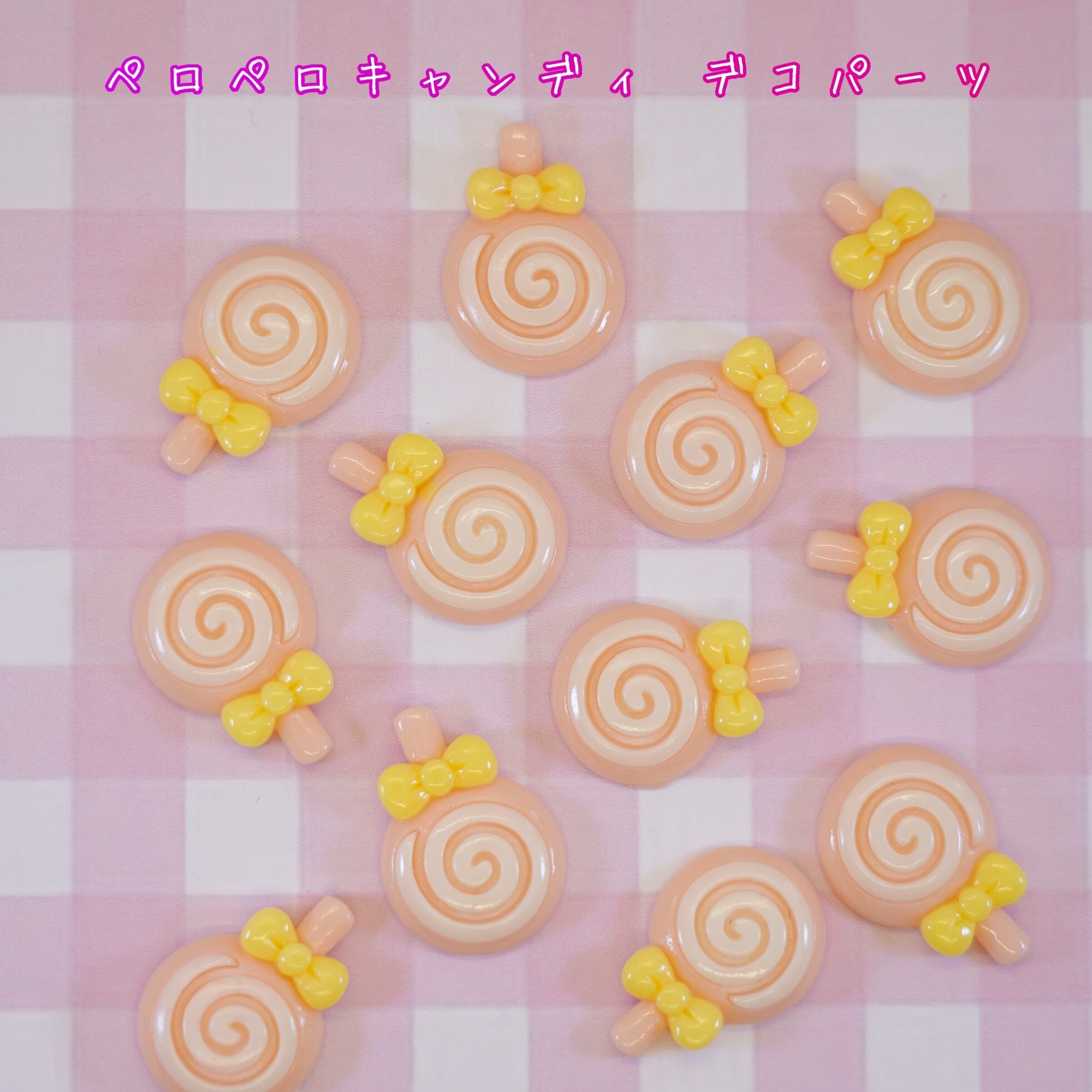 ペロペロキャンディ デコパーツ 10個☆ハンドメイド☆パーツ☆素材☆キッズアクセサリー☆かわいい☆ゆめかわいい☆パステル