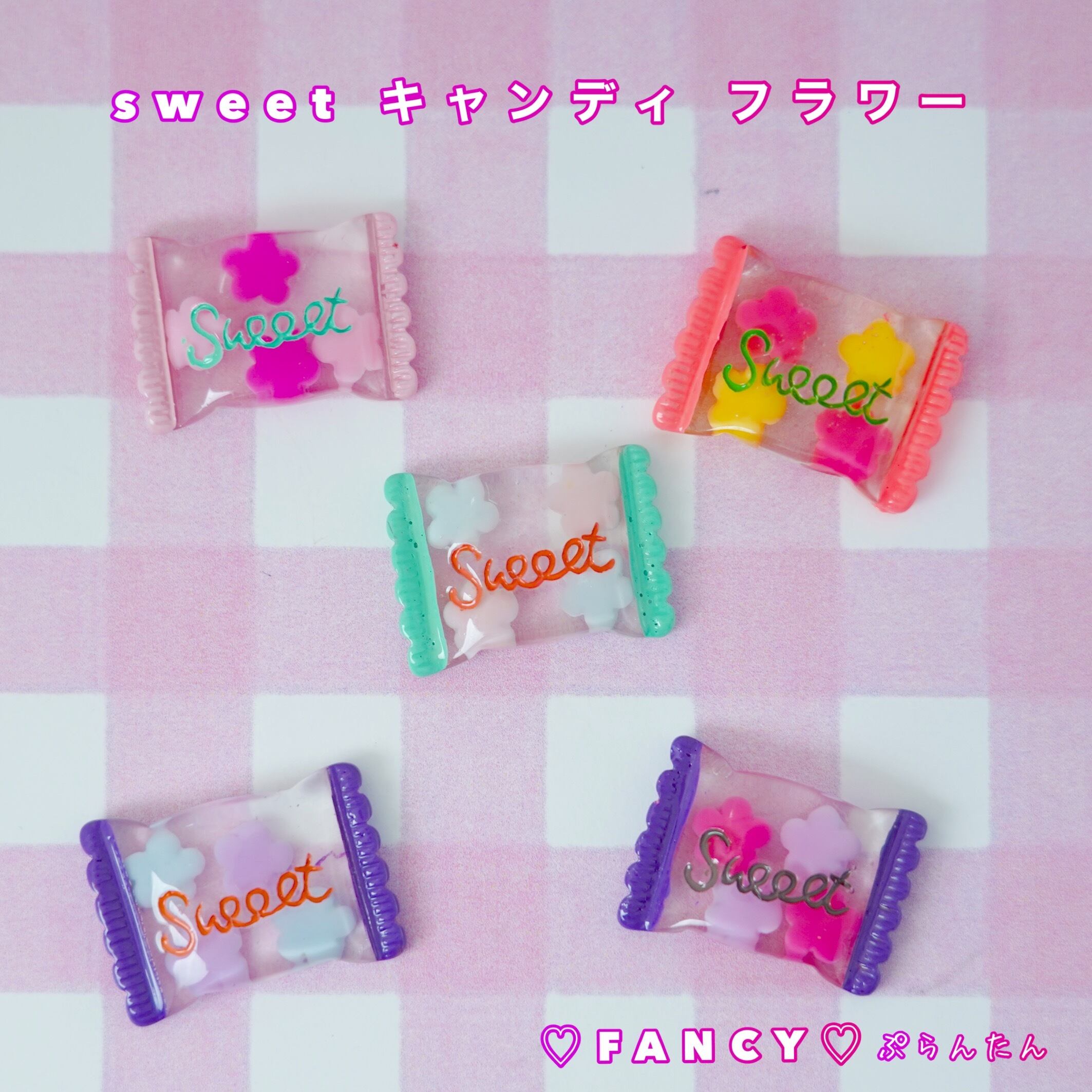 sweet キャンディ フラワー 5個 ☆ハンドメイド☆パーツ☆素材☆キッズアクセサリー☆かわいい☆ゆめかわいい☆パステル