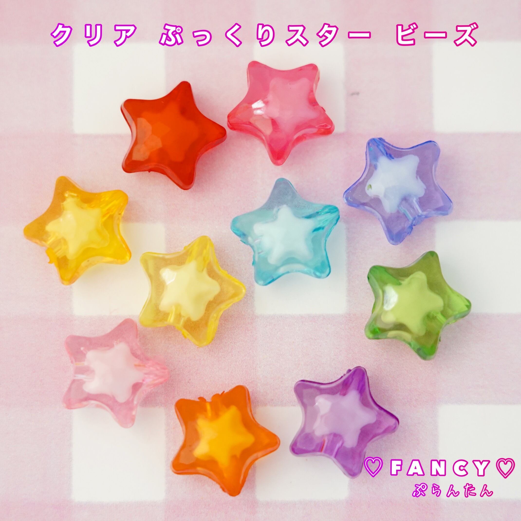 クリア ぷっくり スター ビーズ 30個 ☆ハンドメイド☆パーツ☆素材☆キッズアクセサリー☆かわいい☆ゆめかわいい☆パステル☆ファンシーぷらんたん