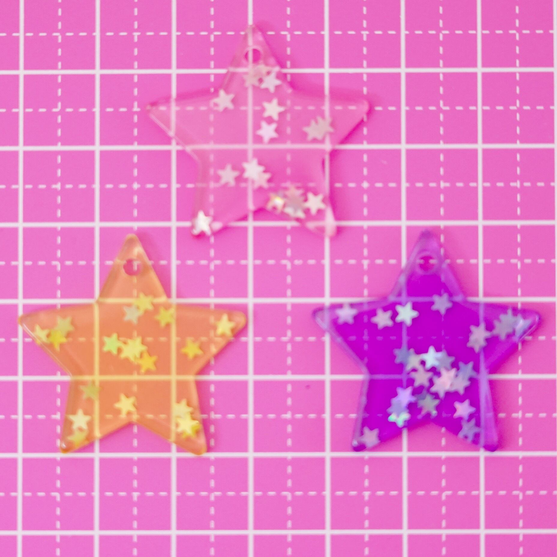 クリアカラー ホログラム スターチャーム 10個 ☆ハンドメイド☆パーツ☆素材☆キッズアクセサリー☆かわいい☆ゆめかわいい☆パステル☆ファンシーぷらんたん