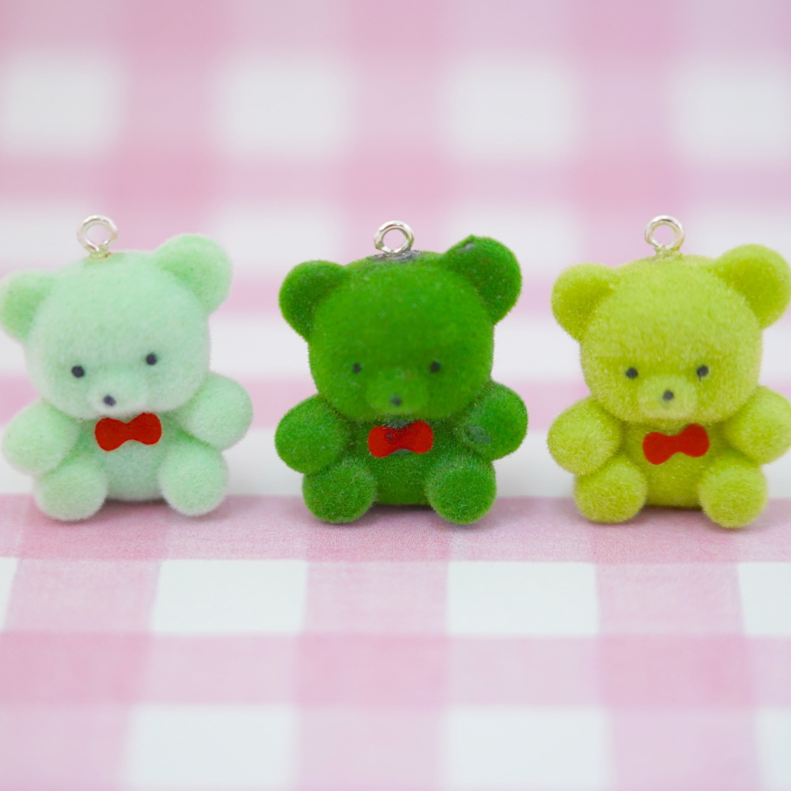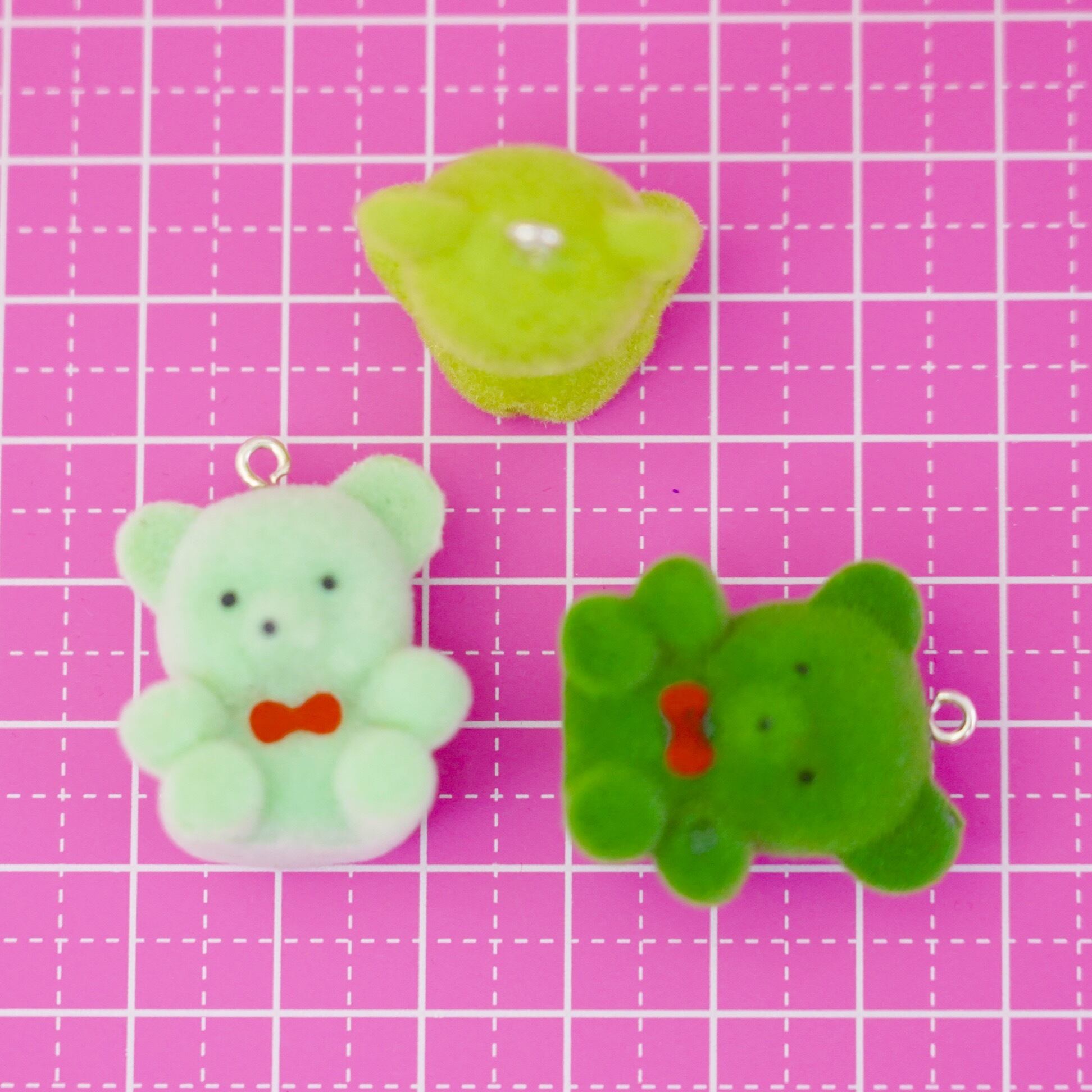 フロッキー くま チャーム 3個 ①☆ハンドメイド☆パーツ☆素材☆キッズアクセサリー☆かわいい☆ゆめかわいい☆パステル☆ファンシーぷらんたん