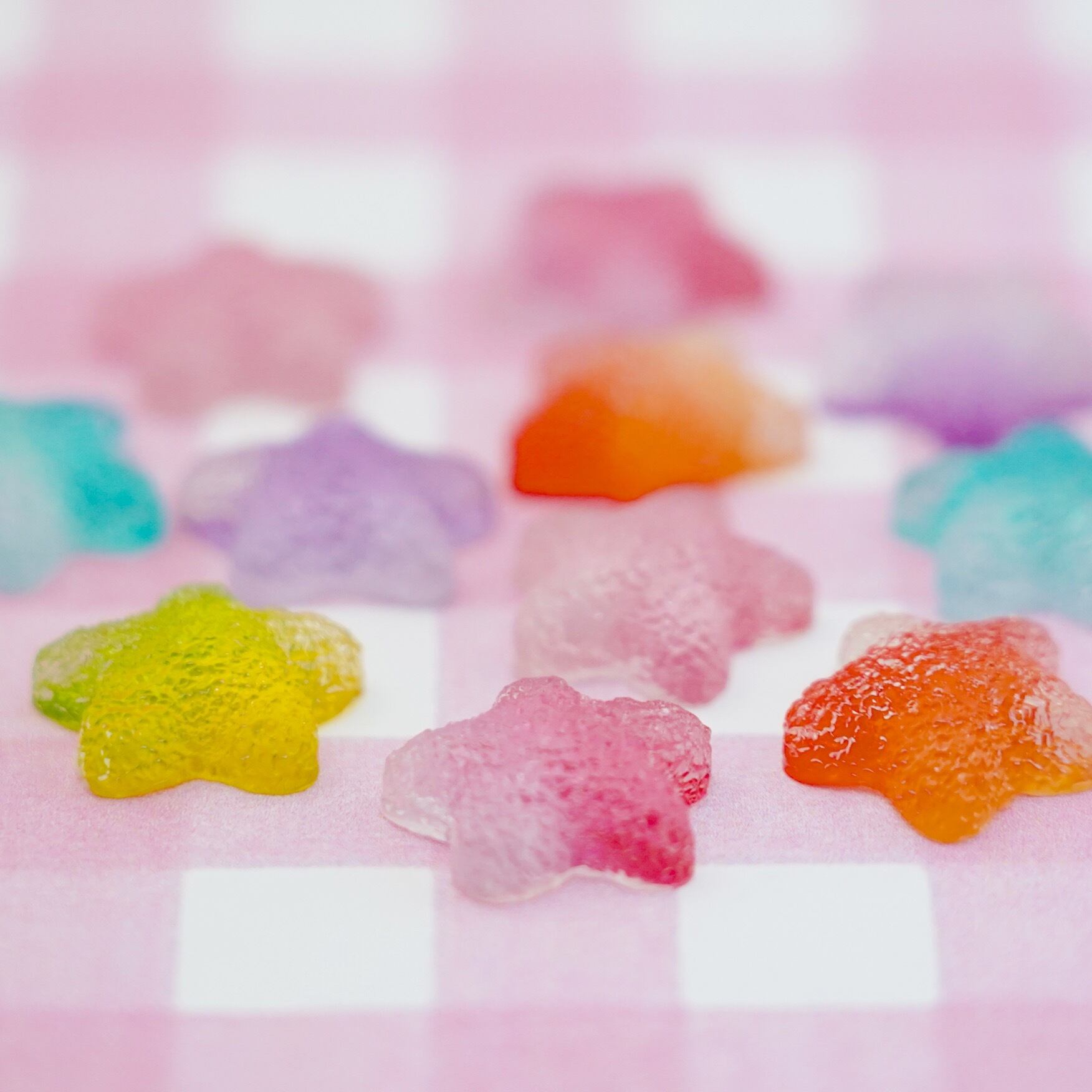 ガラスのような 透け感がかわいい、グラデーションカラーの星型デコパーツ20個です。