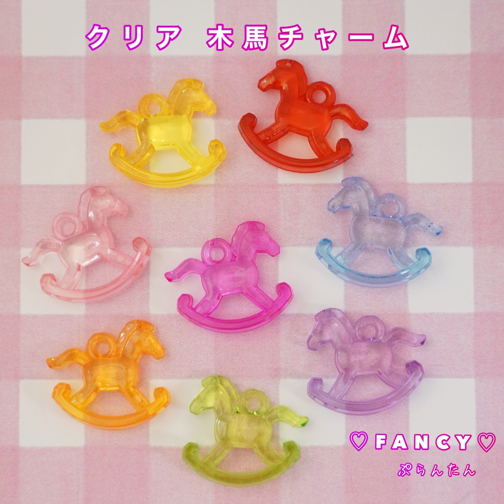 クリア カラフル 木馬チャーム 10個 ☆ハンドメイド☆パーツ☆素材☆キッズアクセサリー☆かわいい☆ゆめかわいい☆パステル☆ファンシーぷらんたん