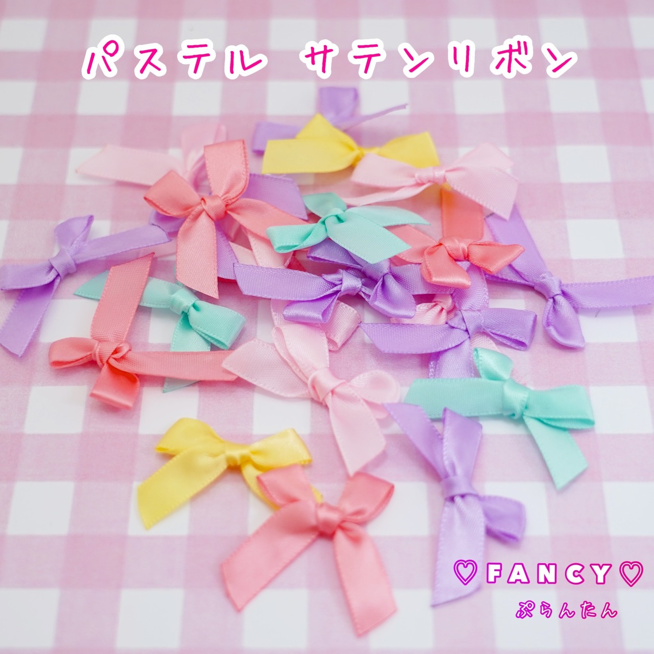 パステル サテンリボン 30個 ☆ハンドメイド☆パーツ☆素材☆キッズアクセサリー☆かわいい☆ゆめかわいい☆パステル☆ファンシーぷらんたん