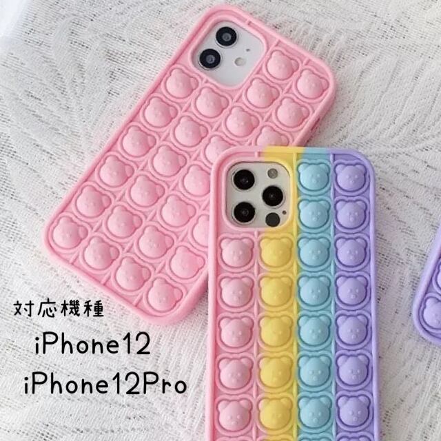 SALE iPhone12・12Pro プッシュポップ くまさん パステルカラーMIX スマホケース プチプチ プッシュポップバブル