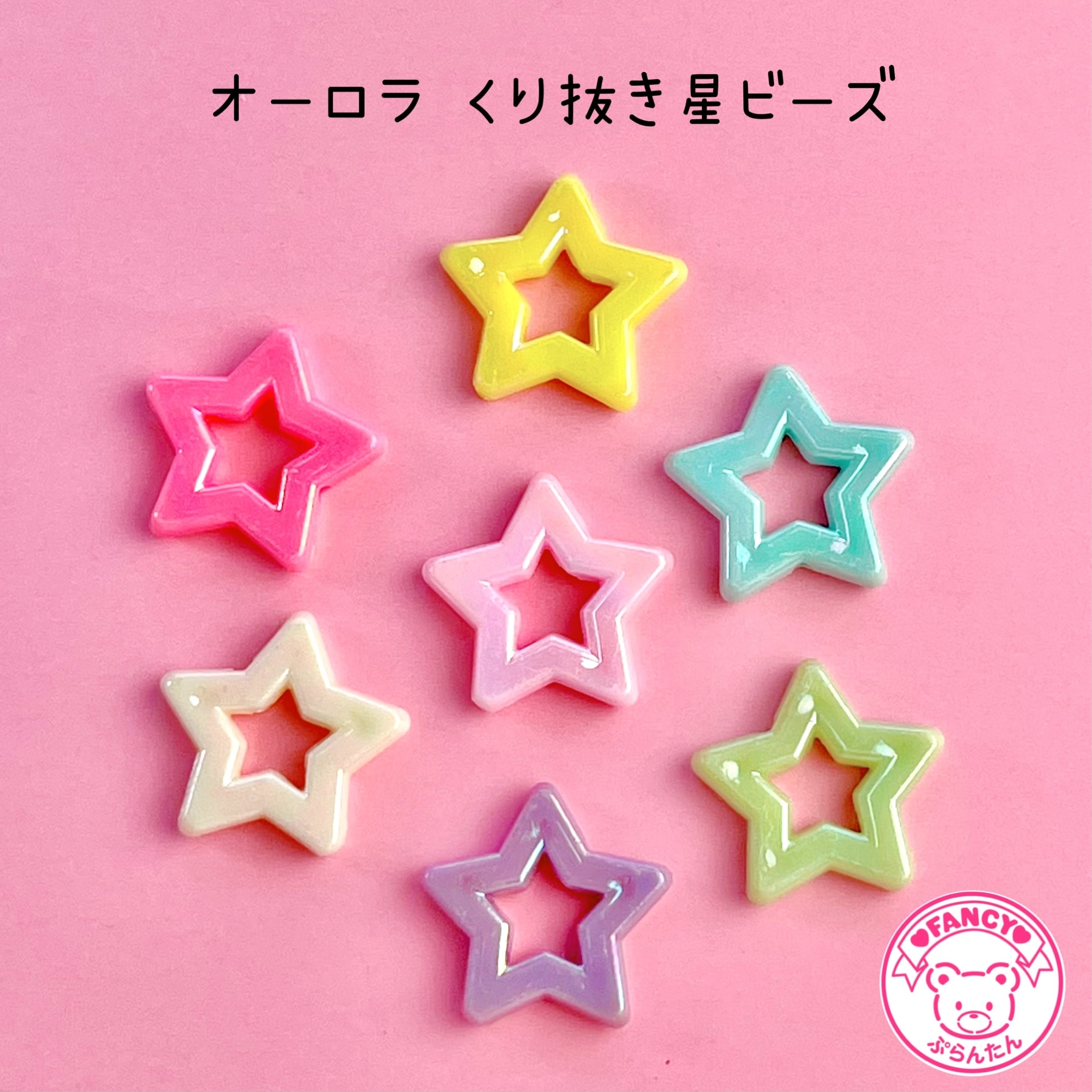 オーロラ くり抜き 星ビーズ 10個☆ハンドメイド☆パーツ☆素材☆キッズアクセサリー☆かわいい☆ゆめかわいい☆パステル ☆222