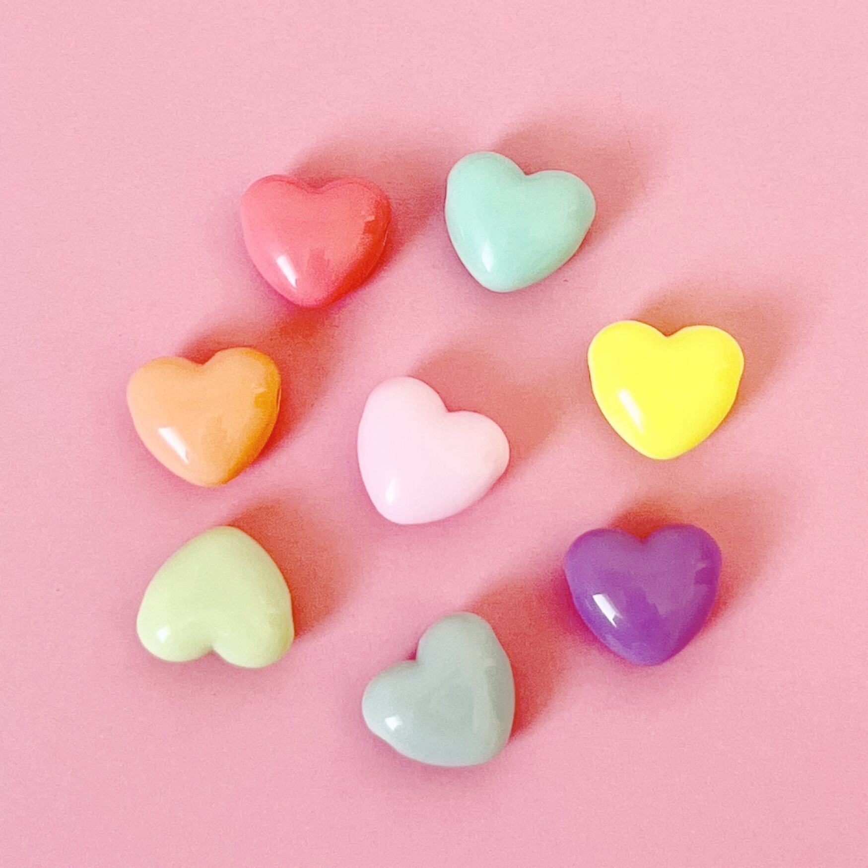 お菓子のガムボールみたいな ぷっくりとしたハートのアクリルビーズ 20個です。