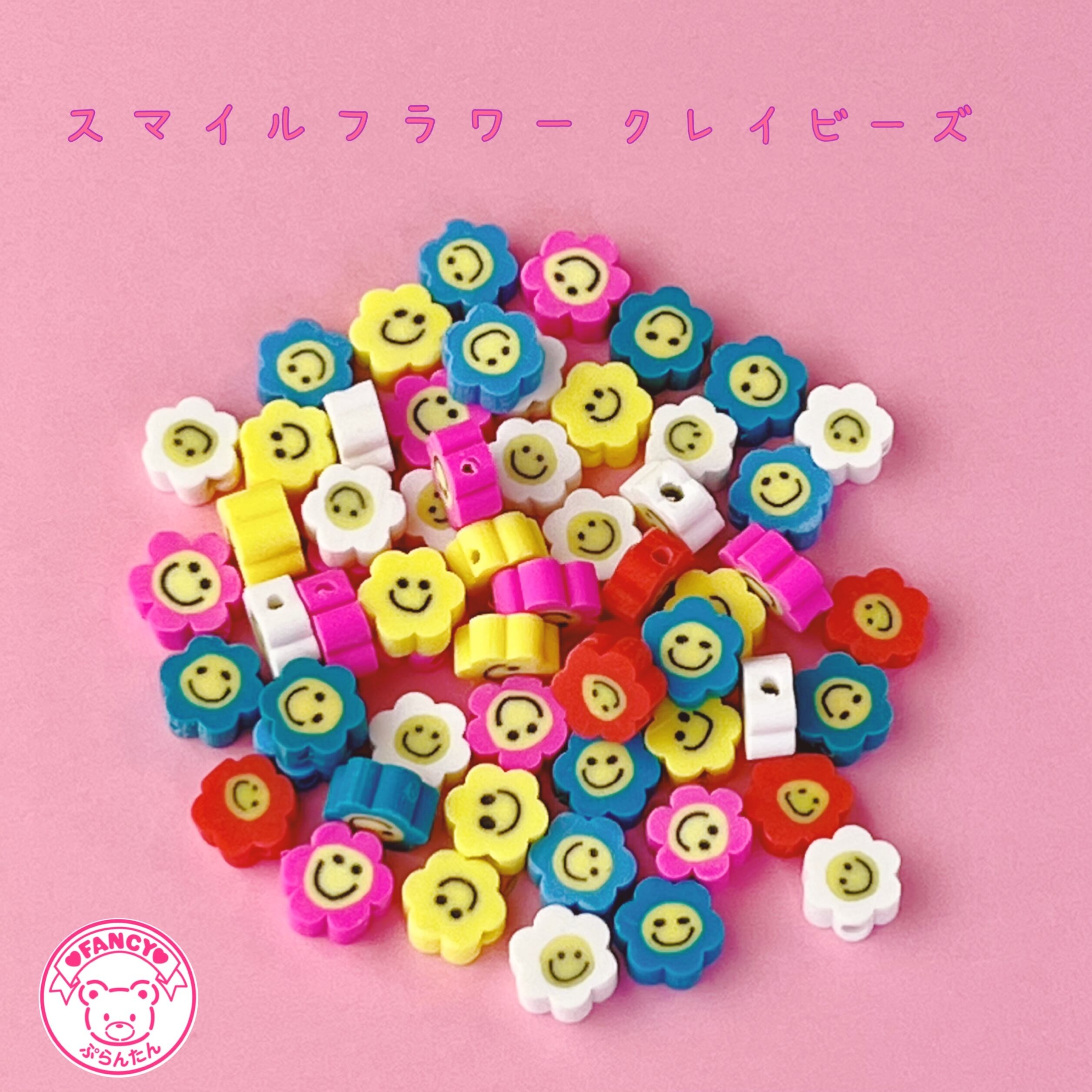 スマイルフラワー クレイビーズ 20g ☆ハンドメイド☆パーツ☆素材☆キッズアクセサリー☆かわいい☆ゆめかわいい☆パステル ☆222