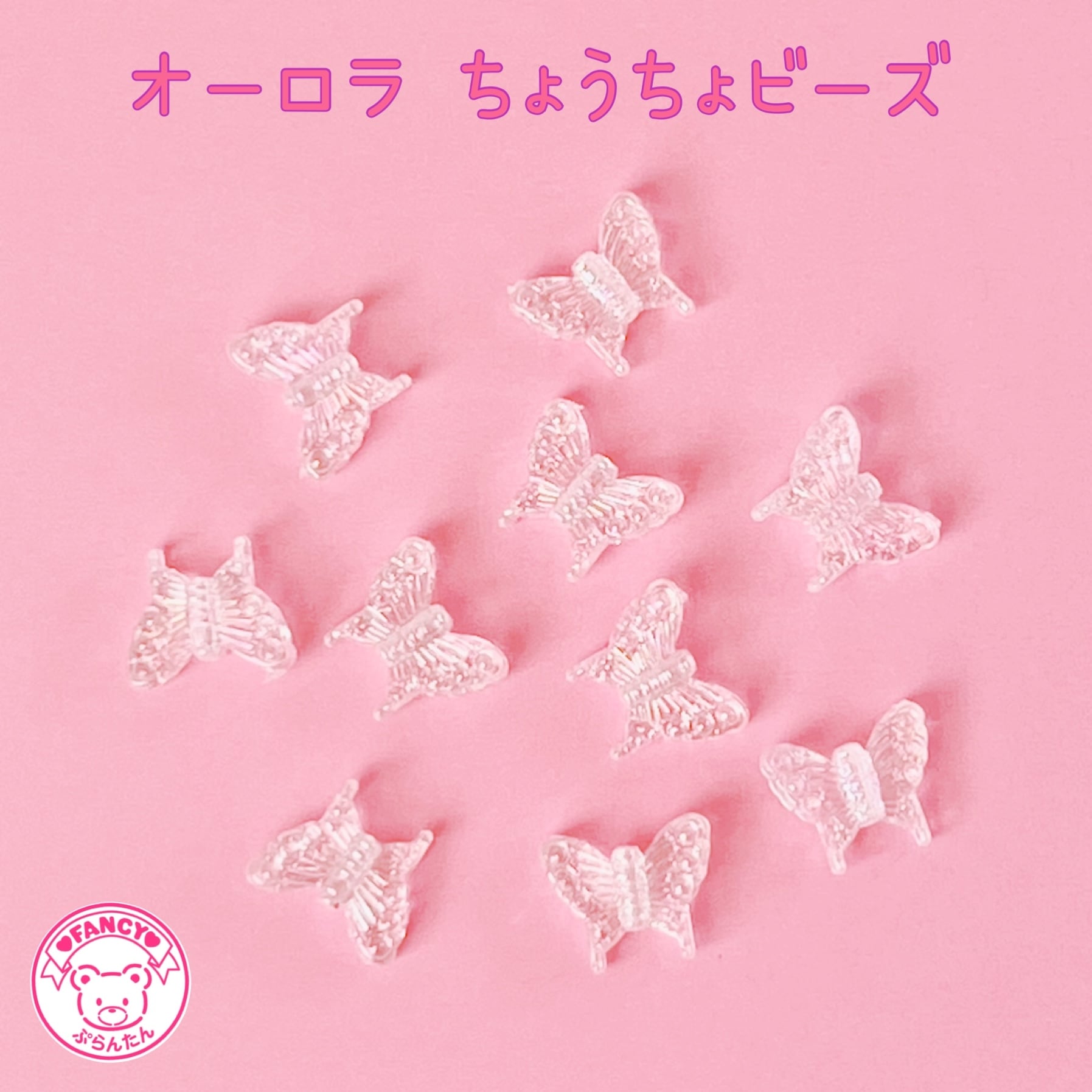 オーロラクリア ちょうちょ ビーズ 20個 ☆ハンドメイド☆パーツ☆素材☆キッズアクセサリー☆かわいい☆ゆめかわいい☆パステル☆ファンシーぷらんたん