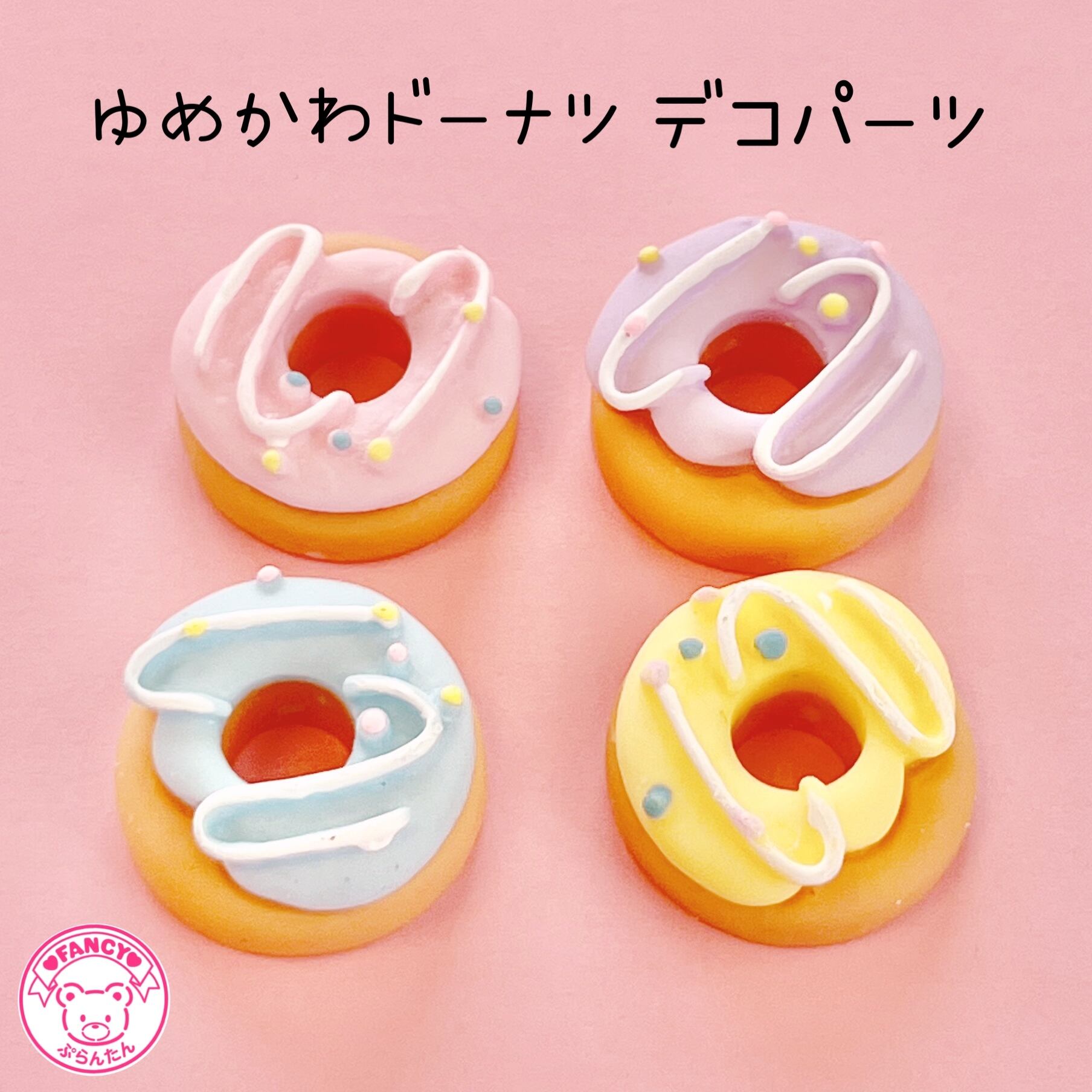 ゆめかわ ドーナツ デコパーツ 4個 ☆ハンドメイド☆パーツ☆素材☆キッズアクセサリー☆かわいい☆ゆめかわいい☆パステル