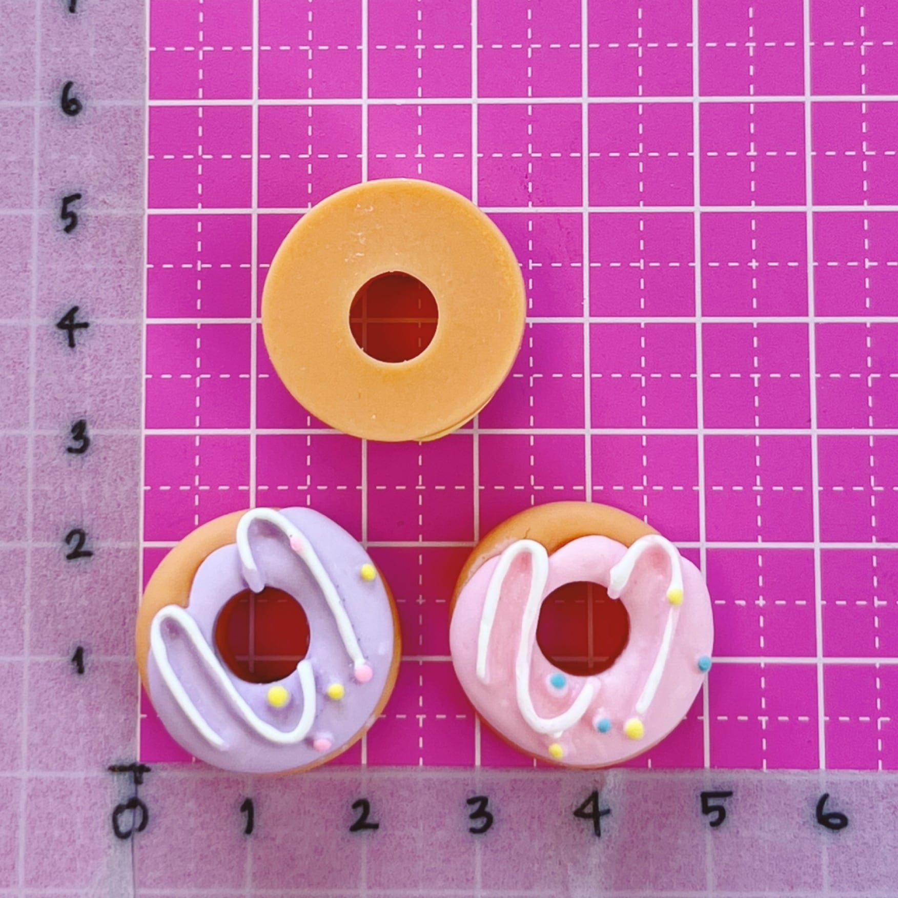 パステルカラーのアイシングが ゆめかわいい ドーナツ型デコパーツ 4個です。