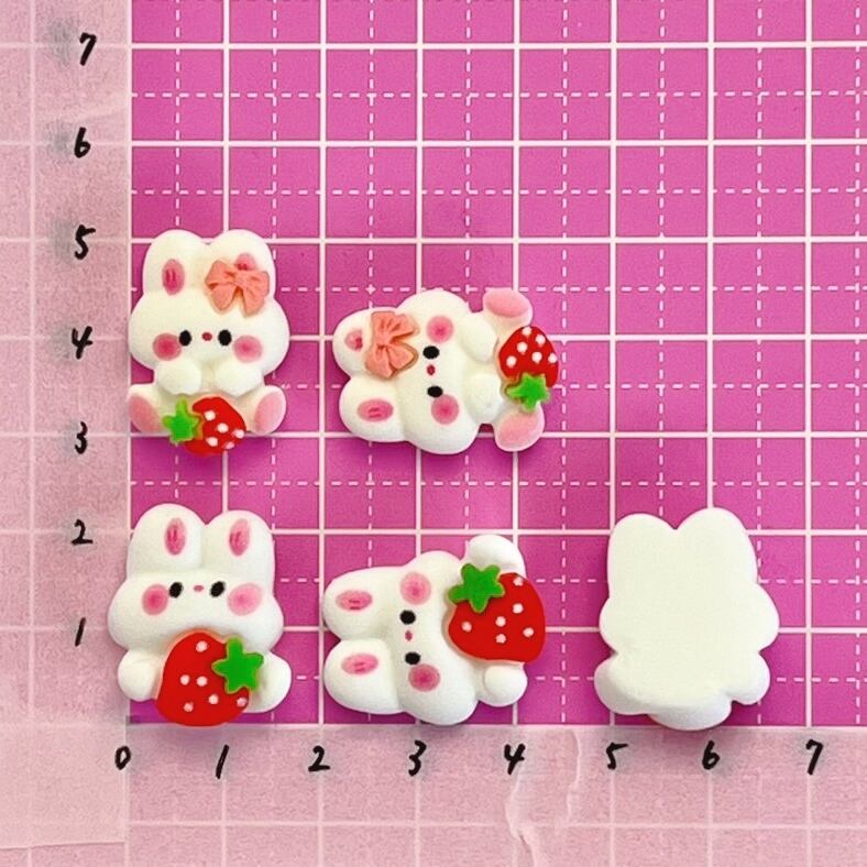 いちごうさぎ デコパーツ 5個 ☆ハンドメイド☆パーツ☆素材☆キッズアクセサリー☆かわいい☆ゆめかわいい☆パステル