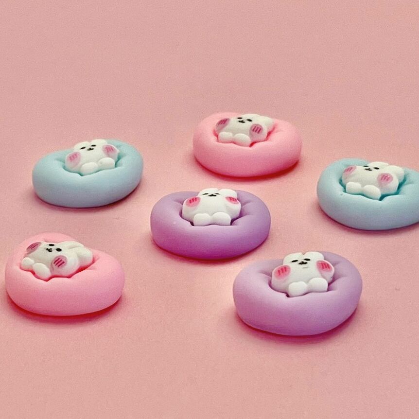 ぷっくりハートうさぎ デコパーツ 6個 ☆ハンドメイド☆パーツ☆素材☆キッズアクセサリー☆かわいい☆ゆめかわいい☆パステル
