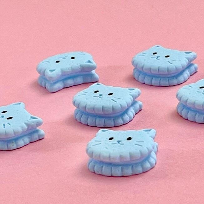 ねこ サンドクッキー デコパーツ 6個 ☆ハンドメイド☆パーツ☆資材☆キッズアクセサリー☆かわいい☆ゆめかわいい☆パステル☆