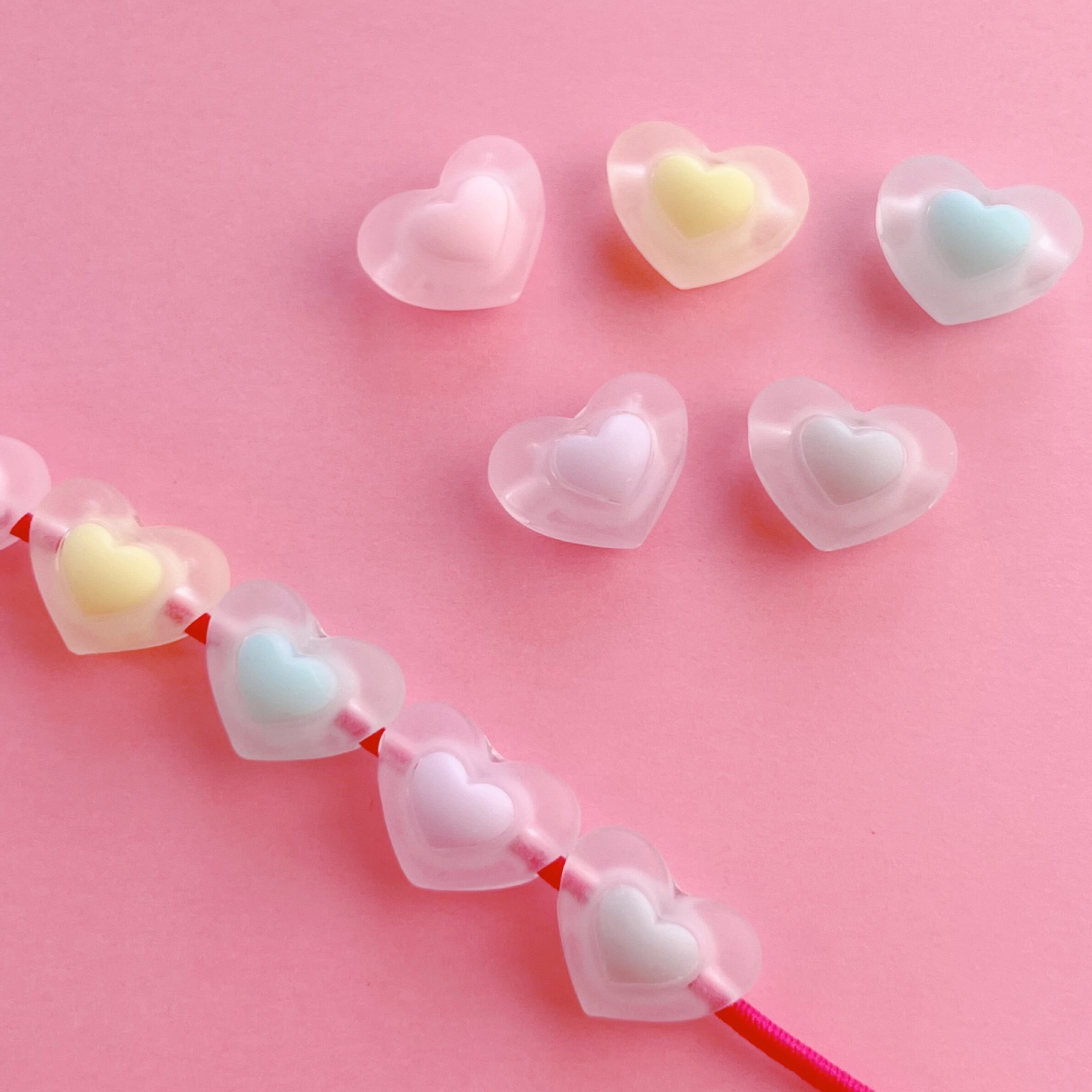 フロスト パステル ハート ビーズ ヘアゴム 10個☆ハンドメイド☆パーツ☆素材☆キッズアクセサリー☆かわいい☆ゆめかわいい☆パステル☆
