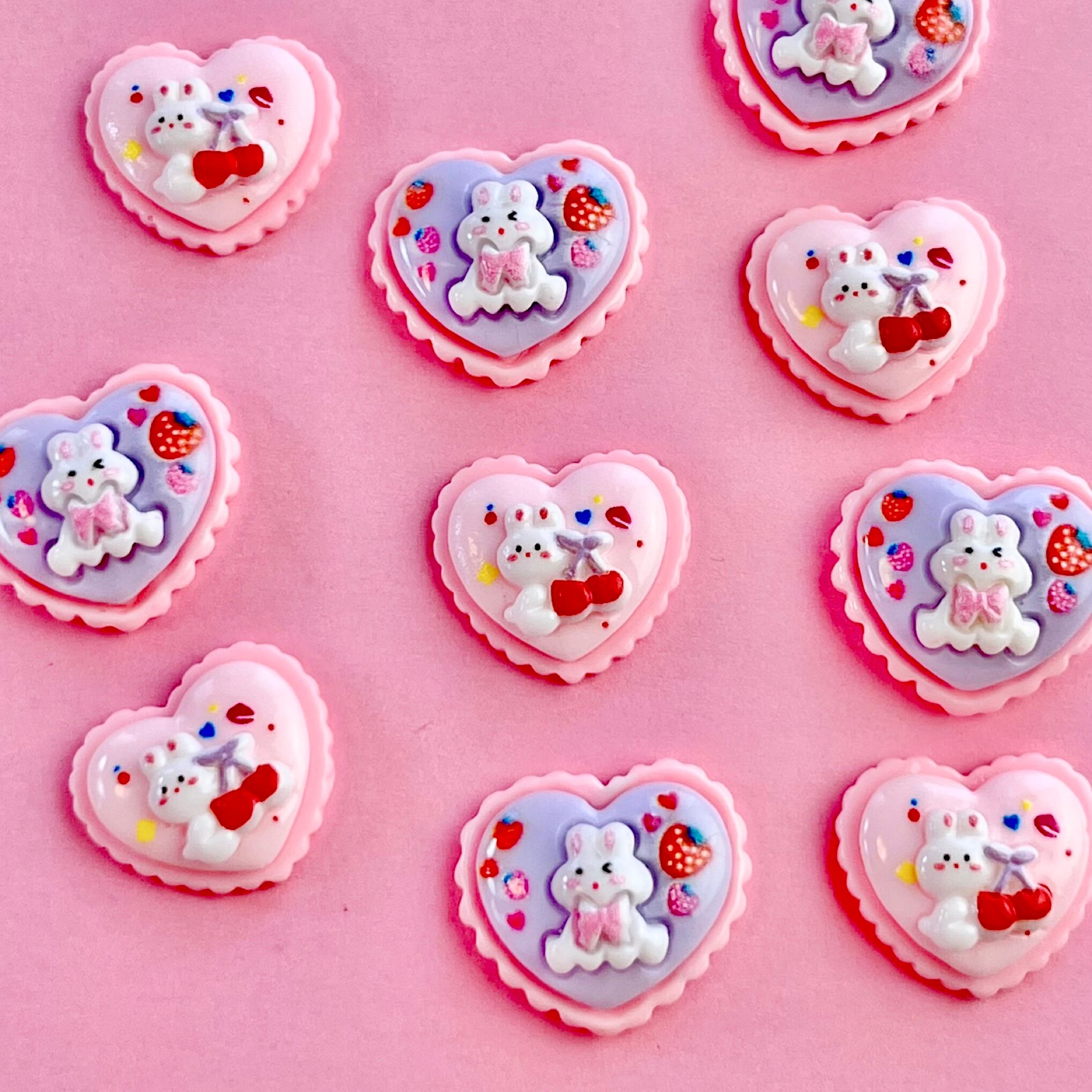 ハート フルーツうさぎ デコパーツ 10個☆ハンドメイド☆パーツ☆素材☆キッズアクセサリー☆かわいい☆ゆめかわいい☆パステル☆