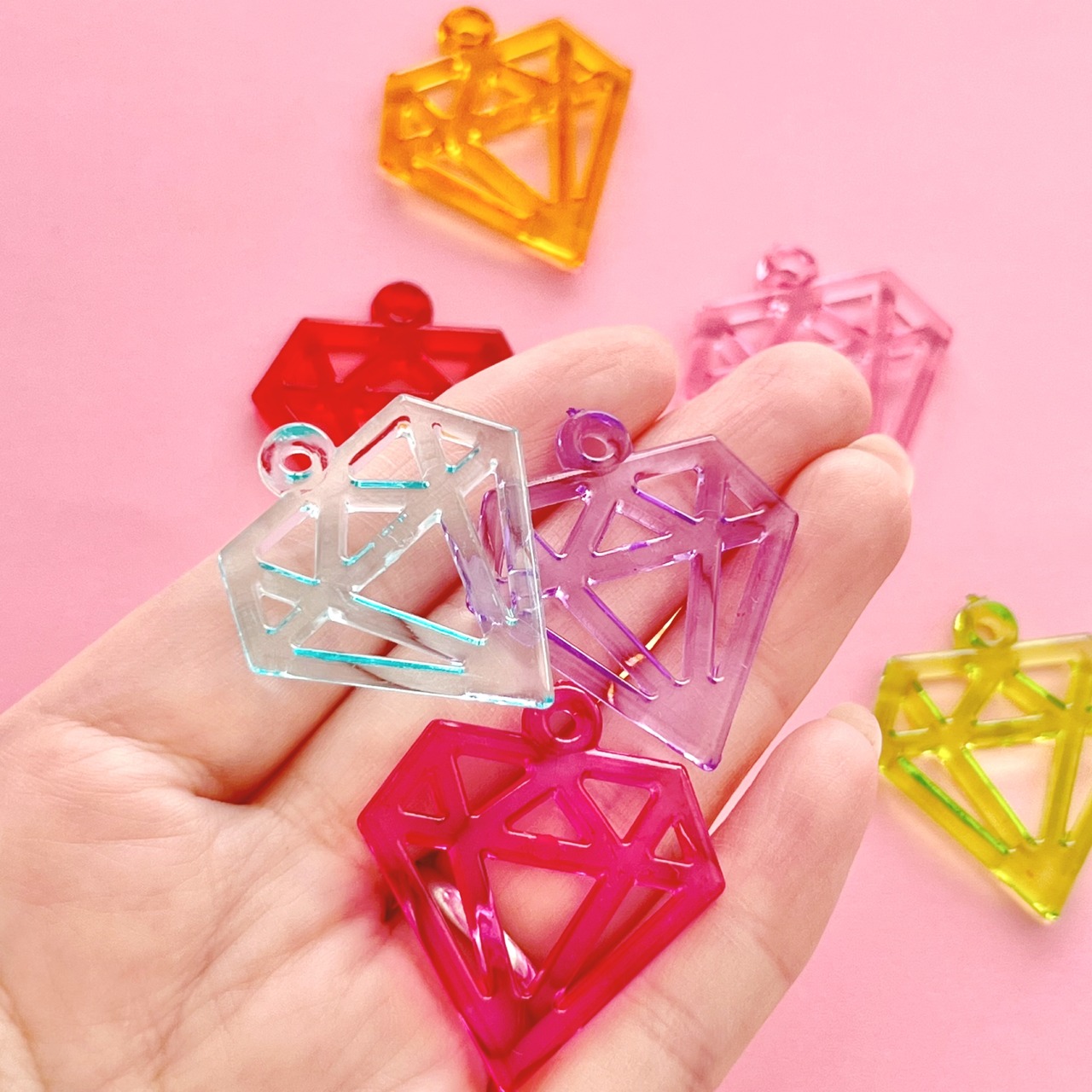 クリアカラーの ダイヤモンド型のアクリルチャーム。