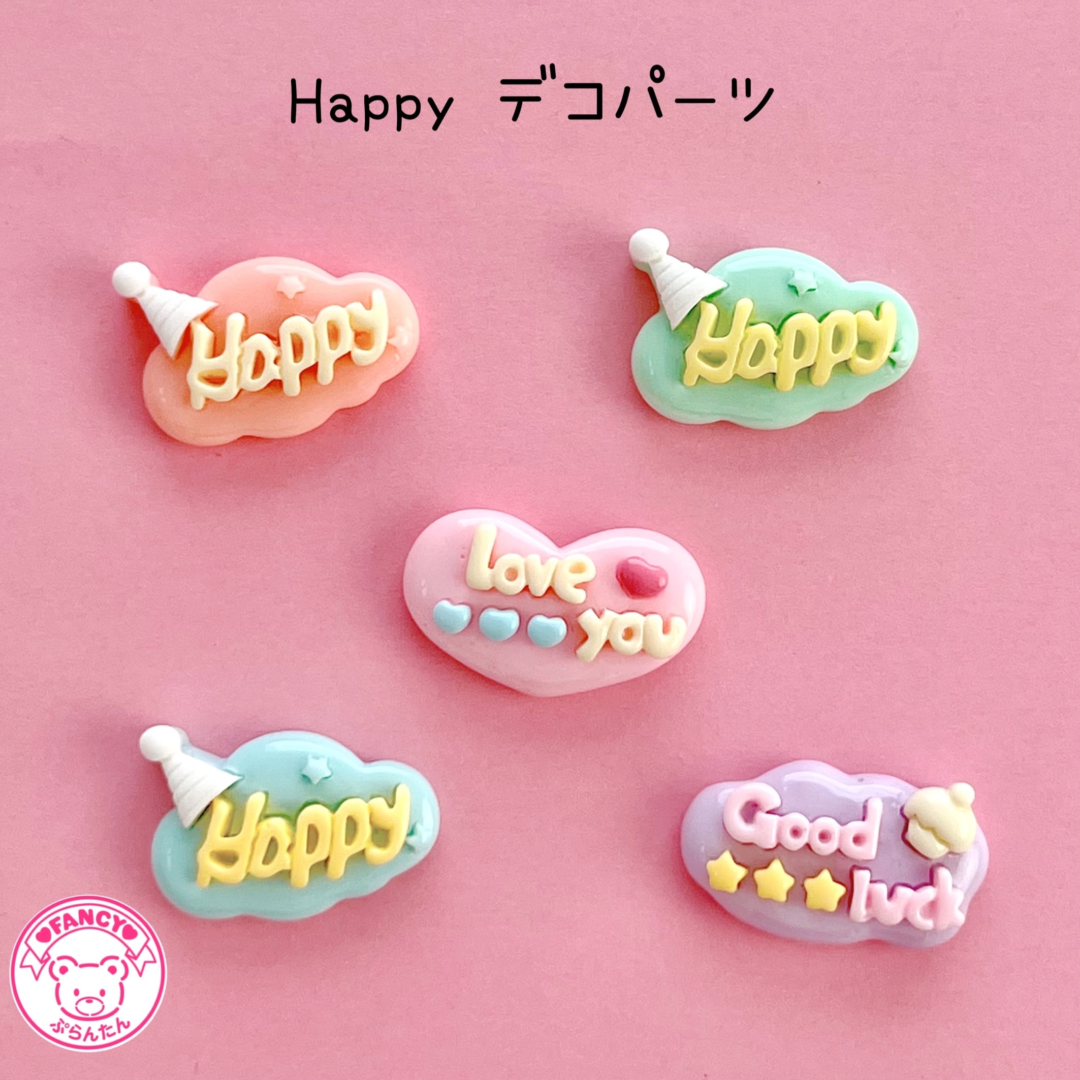 happy デコパーツ 5個 ☆ハンドメイド☆パーツ☆素材☆キッズアクセサリー☆かわいい☆ゆめかわいい☆パステル