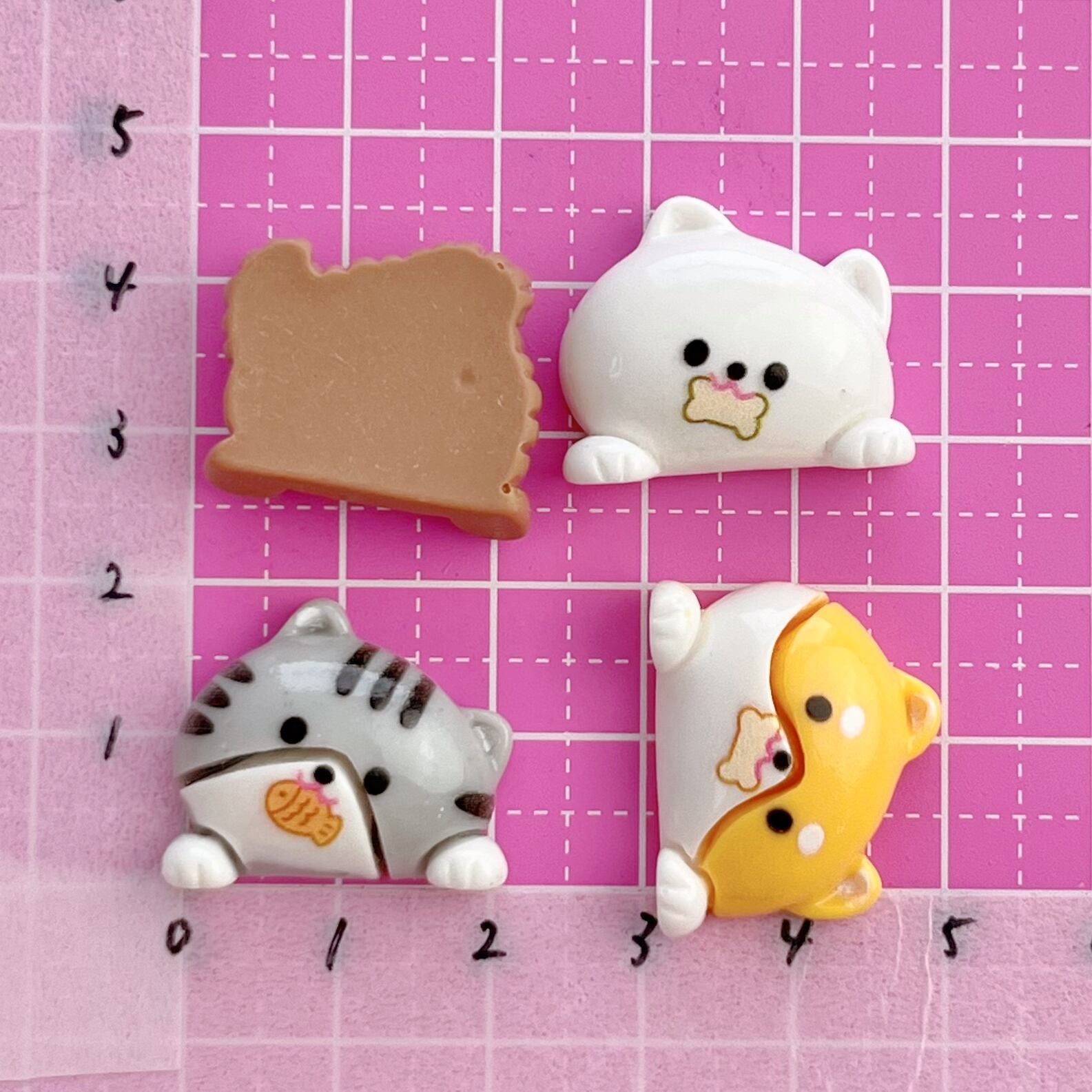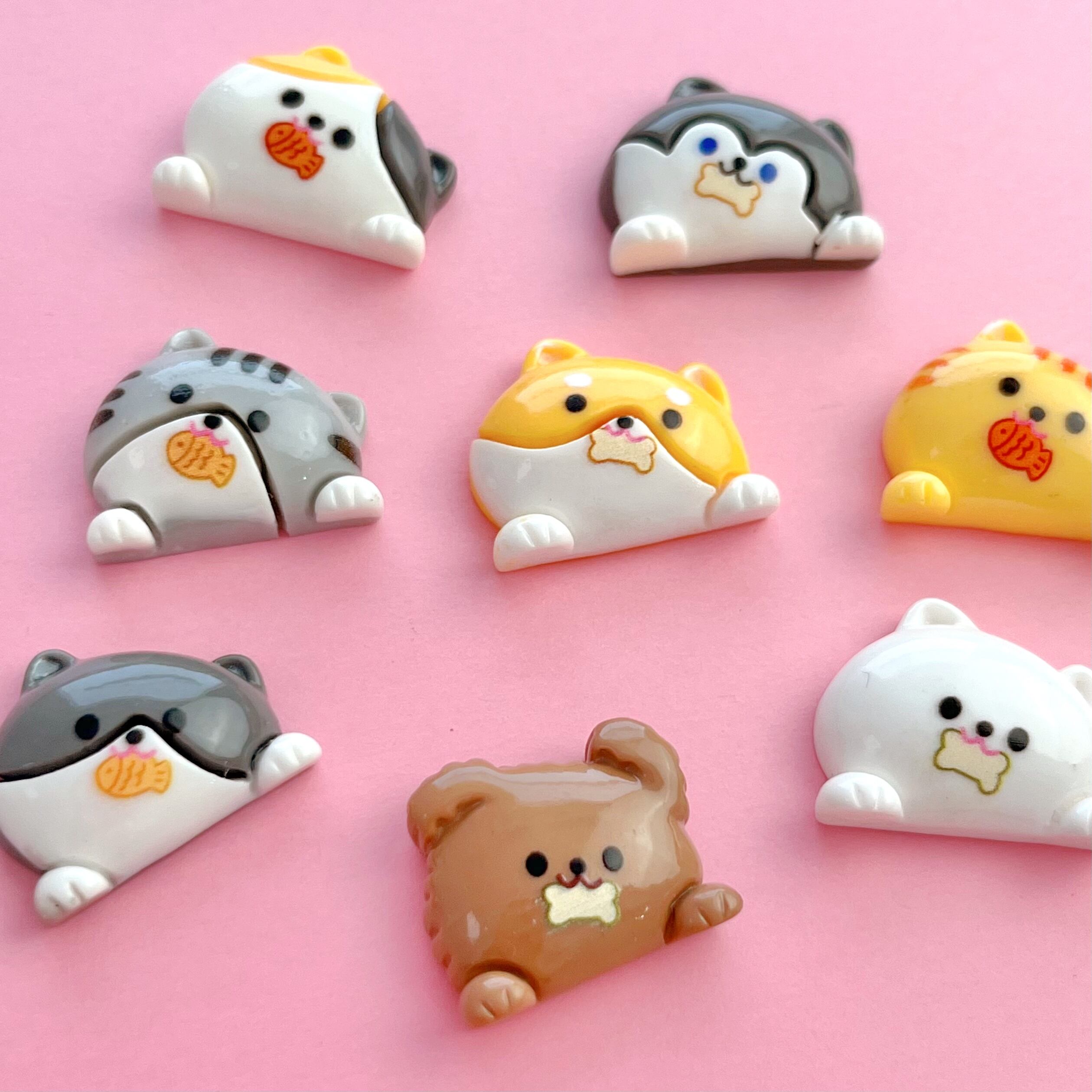 もぐもぐ 犬・ねこ mix デコパーツ 8個 ☆ハンドメイド☆デコパーツ☆素材☆キッズアクセサリー☆かわいい☆ゆめかわいい☆パステル