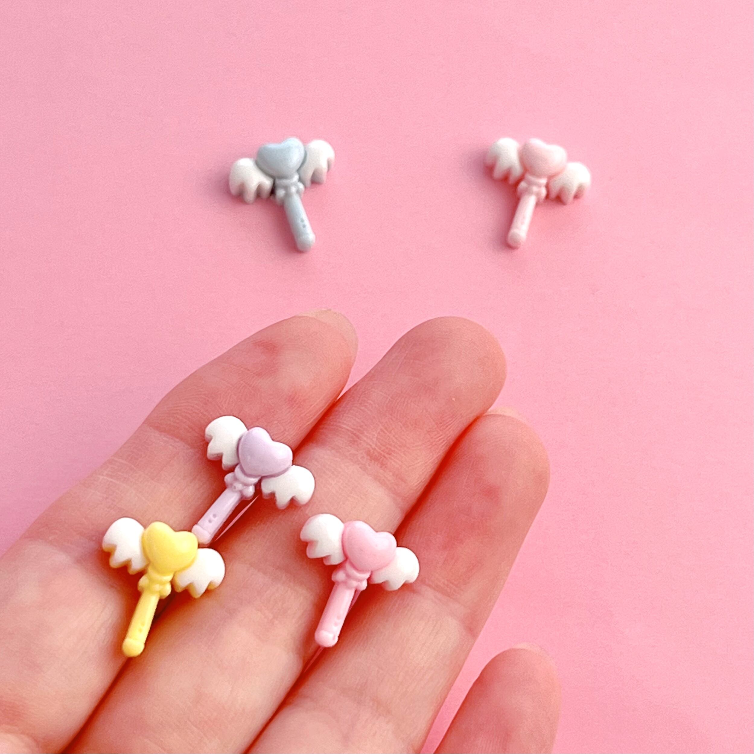 ミニ ハート 羽 ステッキ デコパーツ 5個 ☆ ハンドメイド☆パーツ☆素材☆キッズアクセサリー☆かわいい☆ゆめかわいい☆パステル☆