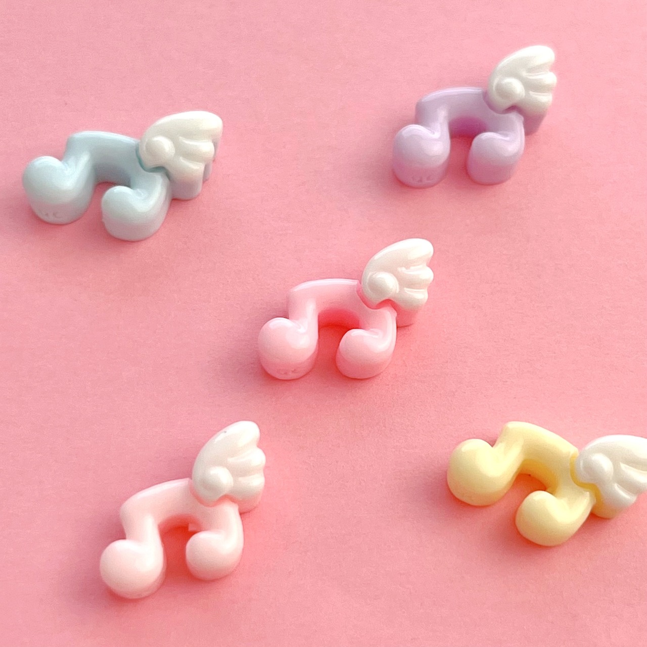 ミニ 音符 天使の羽 デコパーツ 5個 ☆ ハンドメイド☆パーツ☆素材☆キッズアクセサリー☆かわいい☆ゆめかわいい☆パステル☆