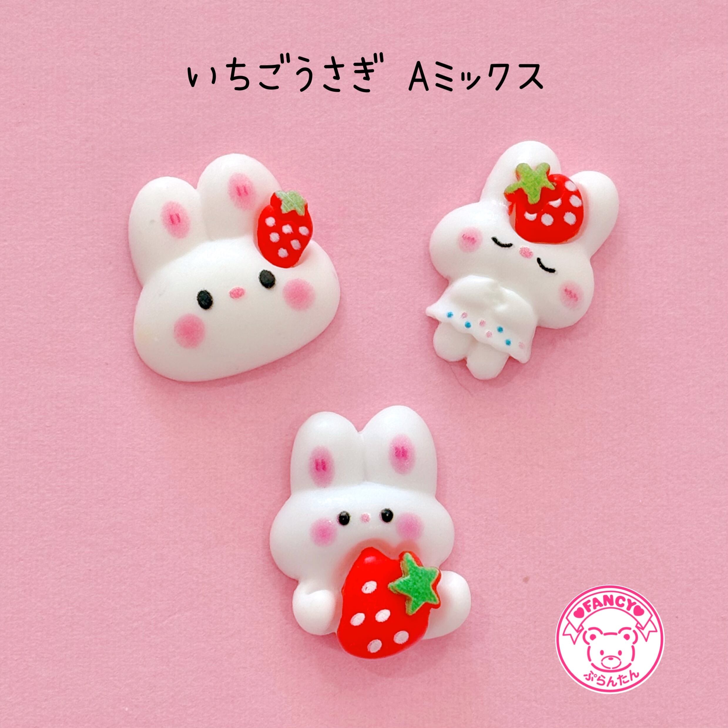 いちごうさぎ A mix デコパーツ 6個 ☆ ハンドメイド☆パーツ☆素材☆キッズアクセサリー☆かわいい☆ゆめかわいい☆パステル☆